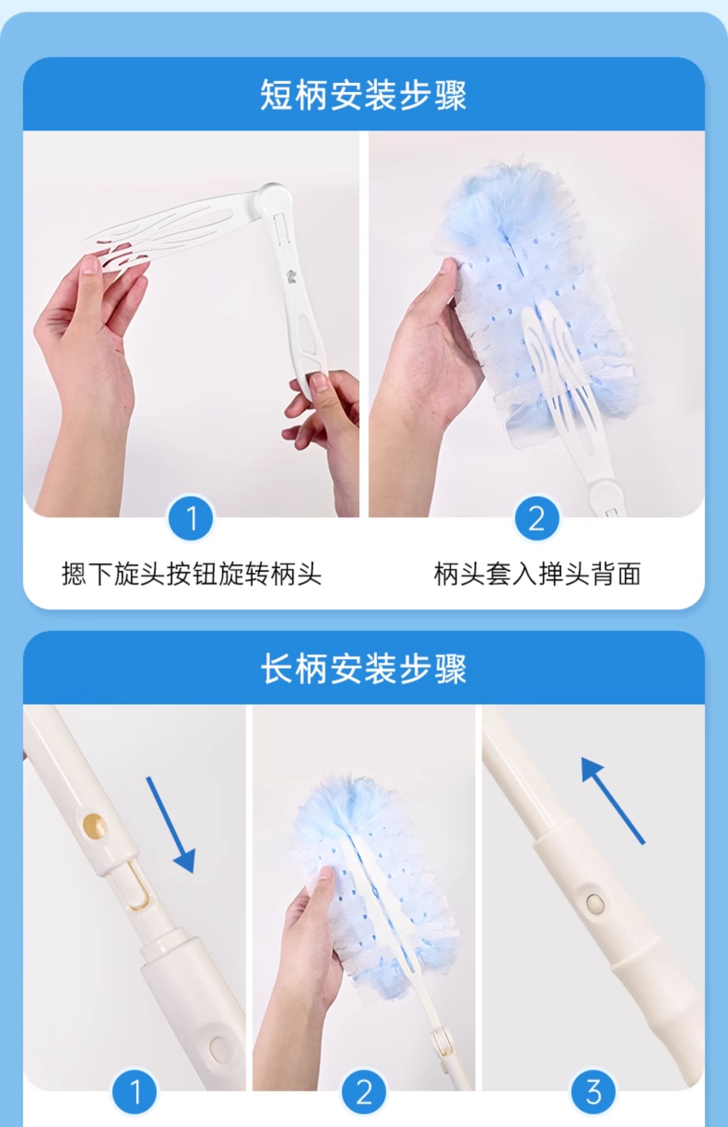 包装清单(套装) :1套(1长柄×1短柄×10掸头)
