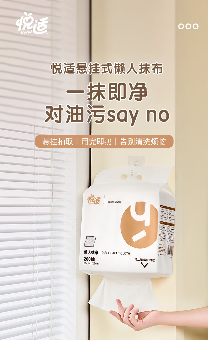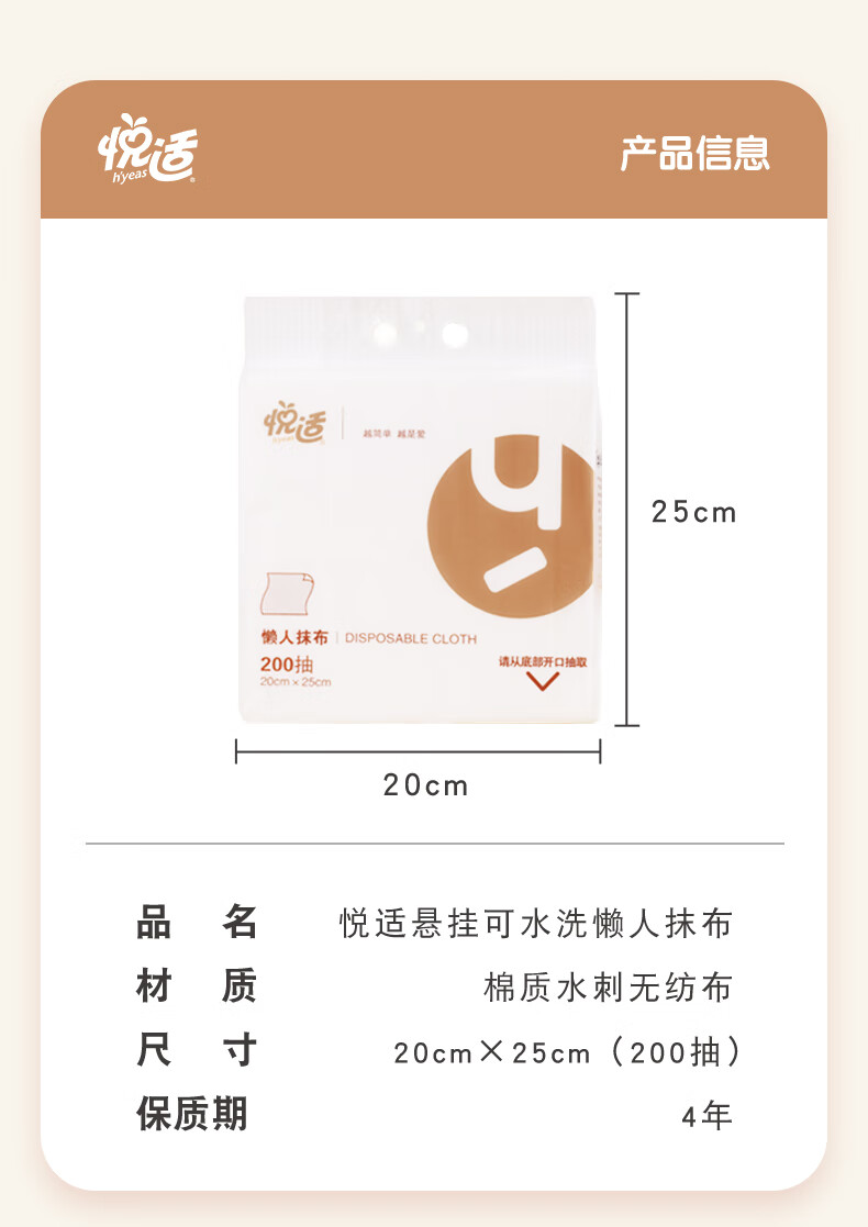 商品名称:悦适 下抽式懒人抹布 200抽*2包 JYG200