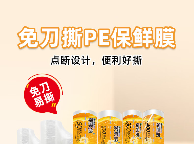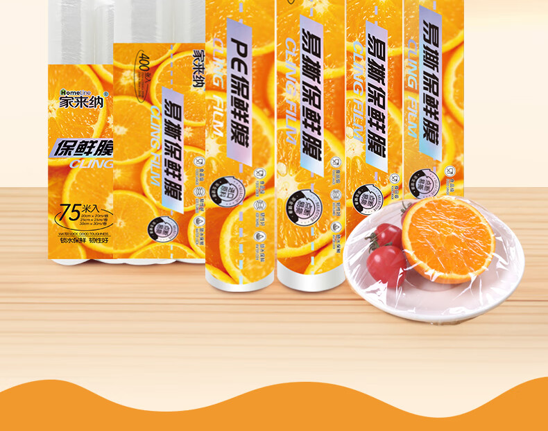 商品名称:家来纳 点断式PE保鲜膜2合1组合【25cm*25m+25cm*30m】 SKKM2JA5550D