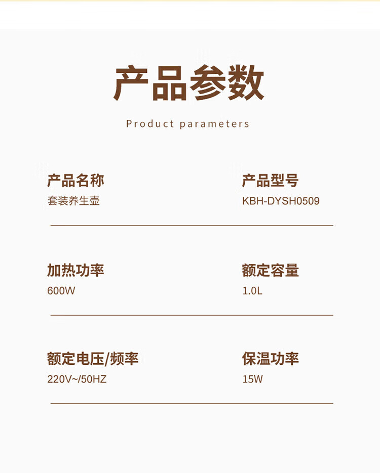 商品名称:康巴赫 套装养生壶 1.0L KBH-YSH0509