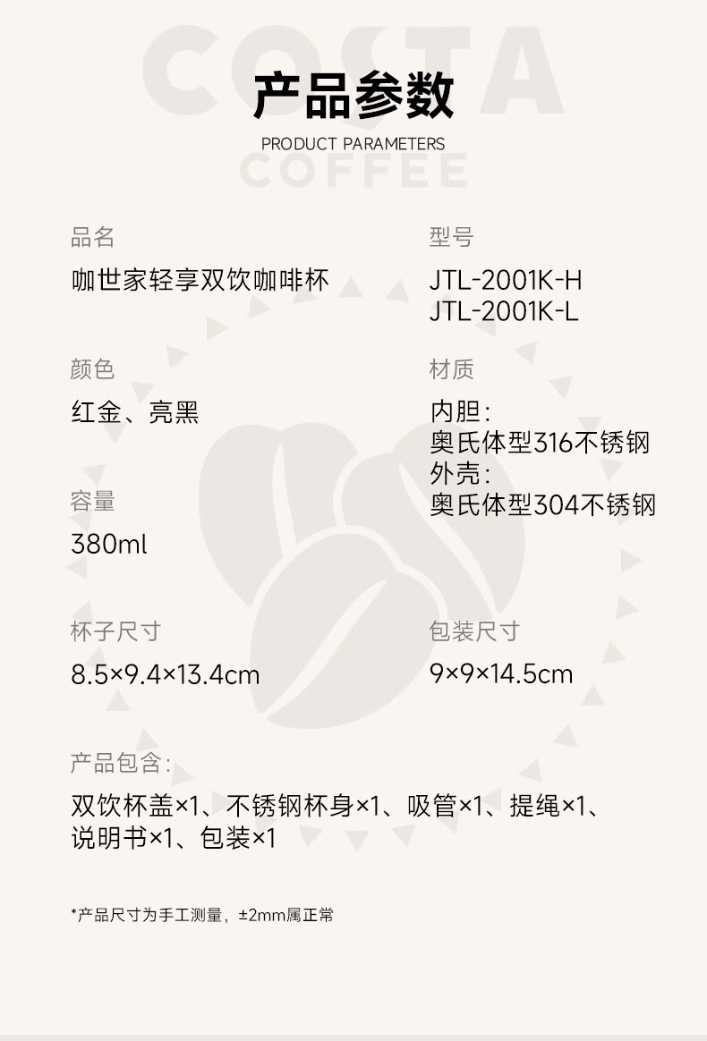 商品名称:咖世家 轻享双饮咖啡杯 420ML JTL-2001K-H