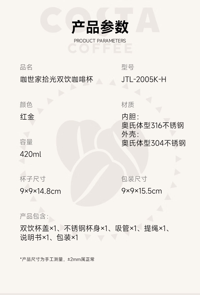 商品名称:咖世家 拾光双饮咖啡杯 420ML JTL-2005K-H