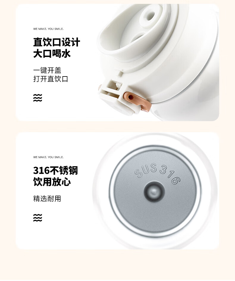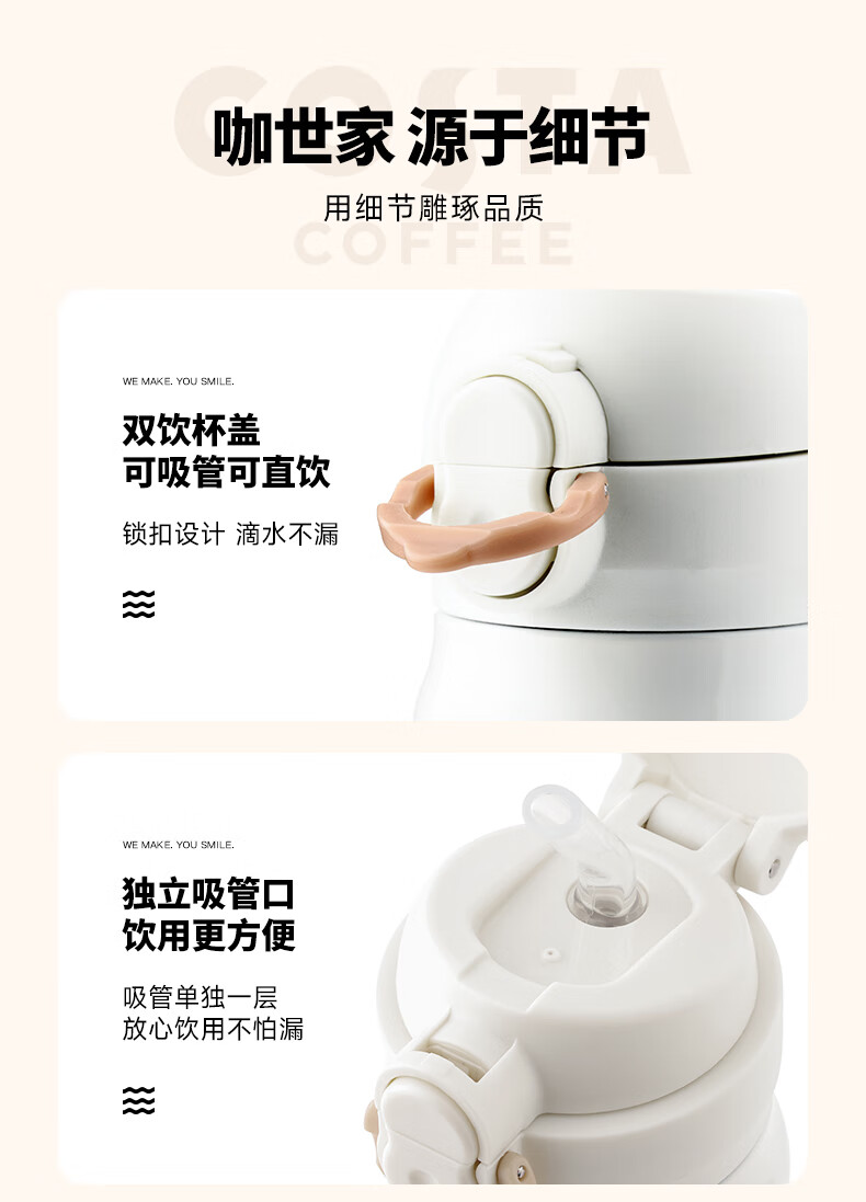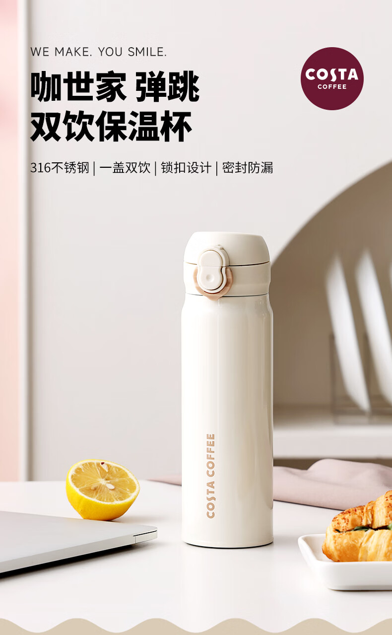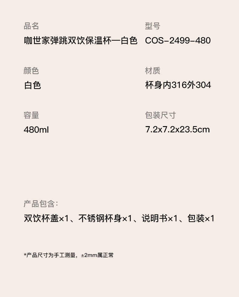 咖世家 弹跳双饮保温杯—白色 480ML COS-2499-480