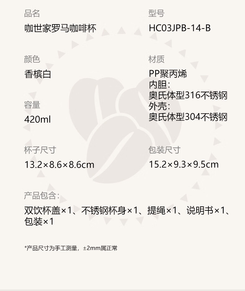 商品名称:咖世家 罗马咖啡杯 420ml HC03JPB-14-B