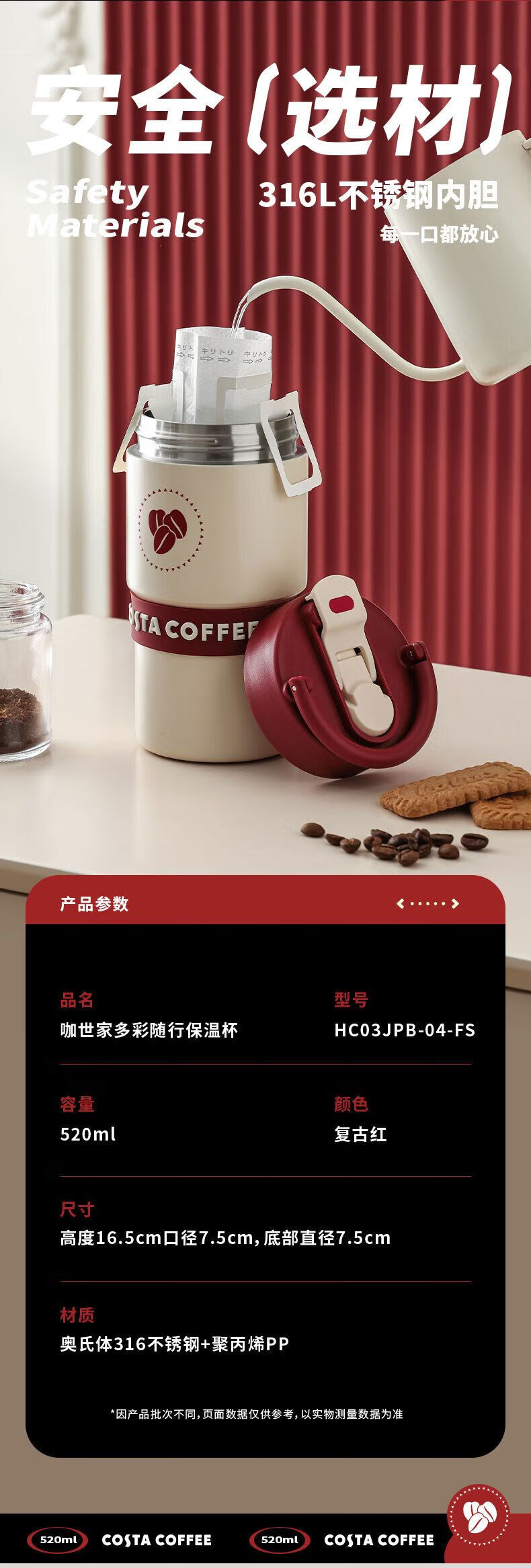 咖世家 多彩随行保温杯 520ml HC03JPB-04-FS