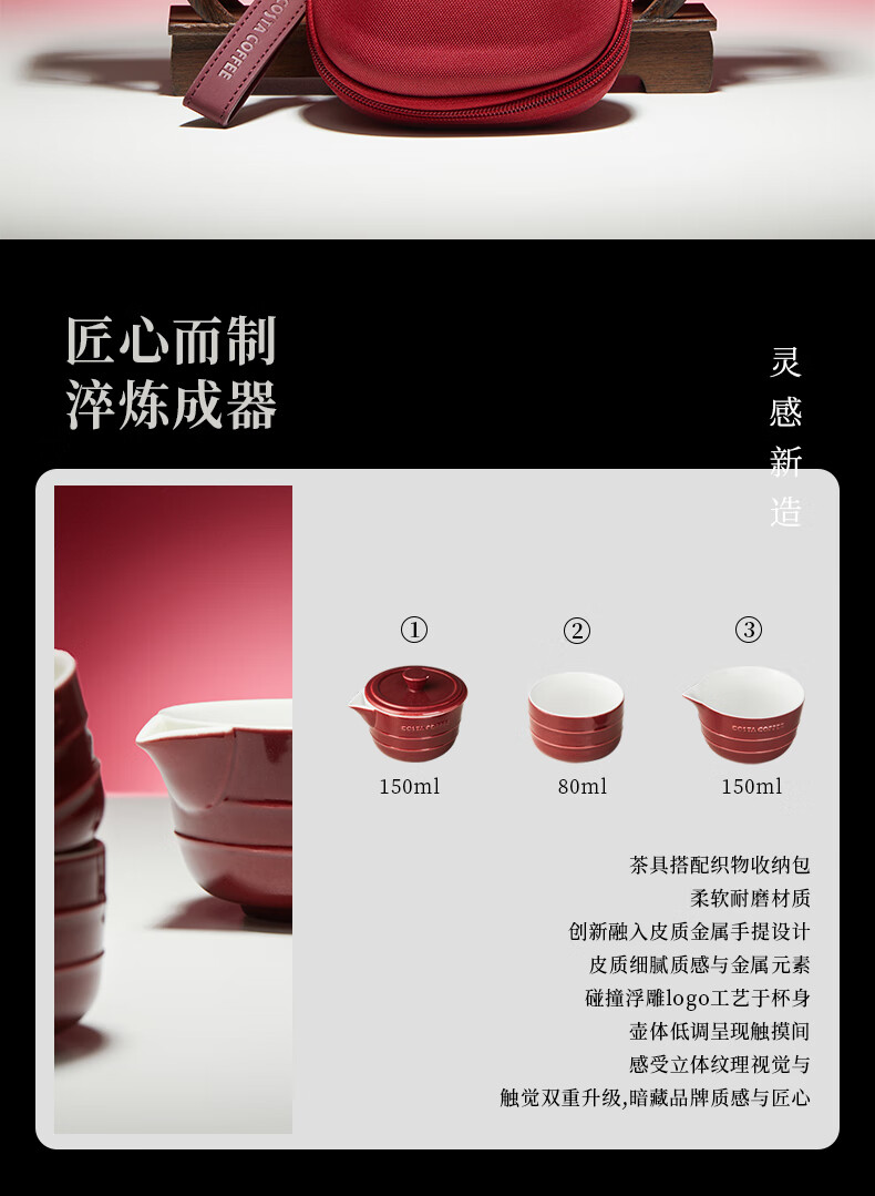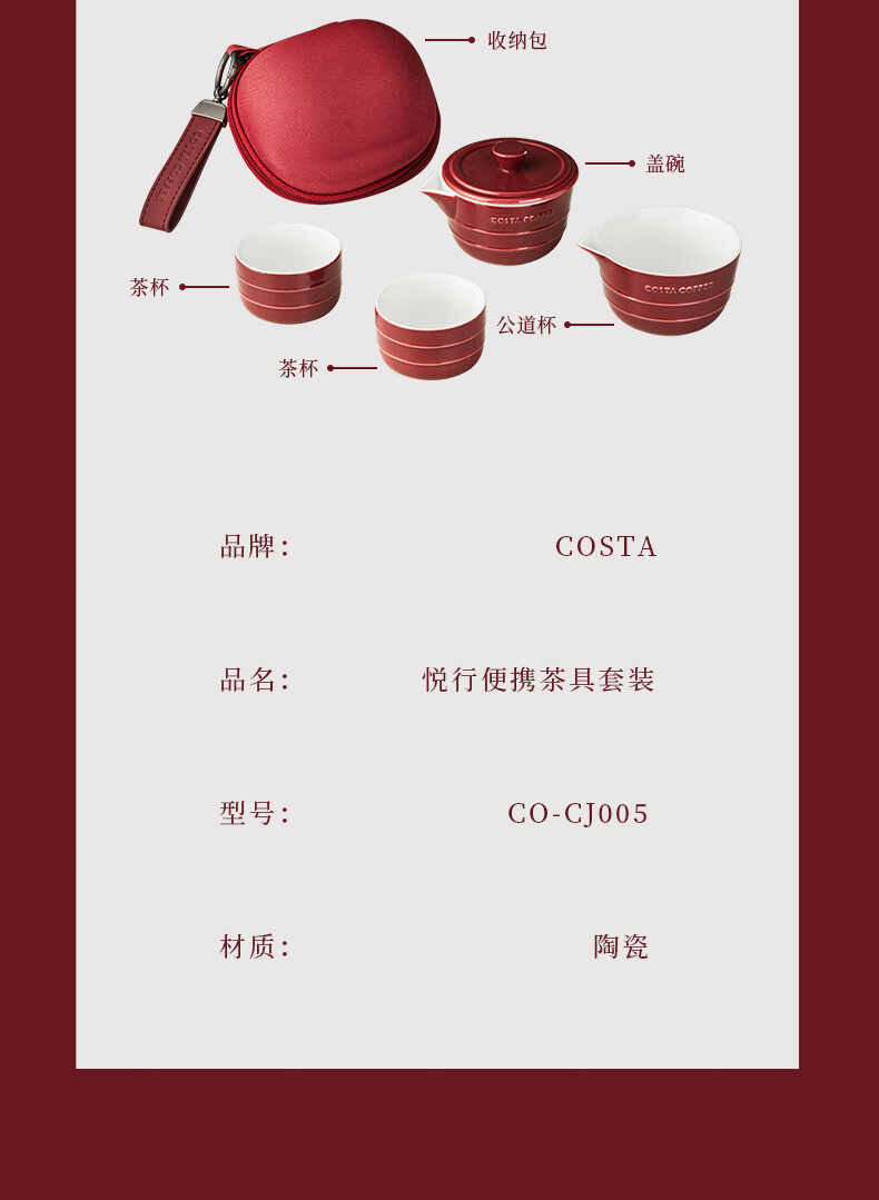 商品名称:咖世家 悦行便携茶具套装 盖碗150ml 公道杯150ml 茶杯80ml CO-CJ005