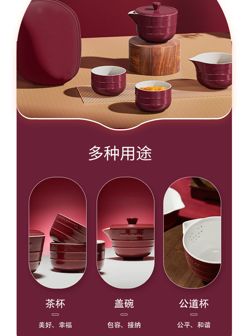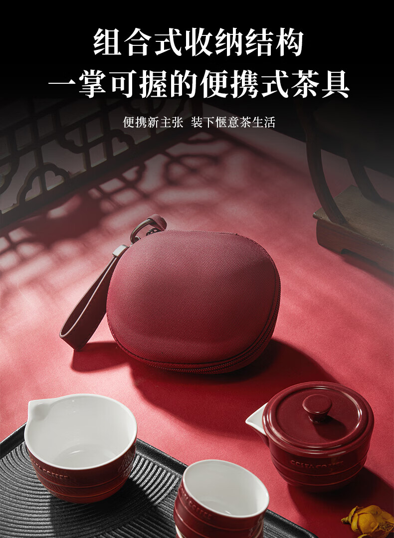 咖世家 悦行便携茶具套装 盖碗150ml 公道杯150ml 茶杯80ml CO-CJ005