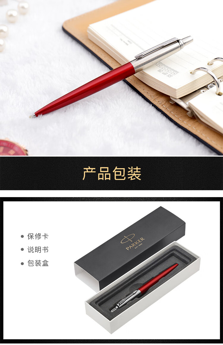 商品名称:派克签字笔(PARKER)乔特系列肯辛顿红白夹凝胶水笔