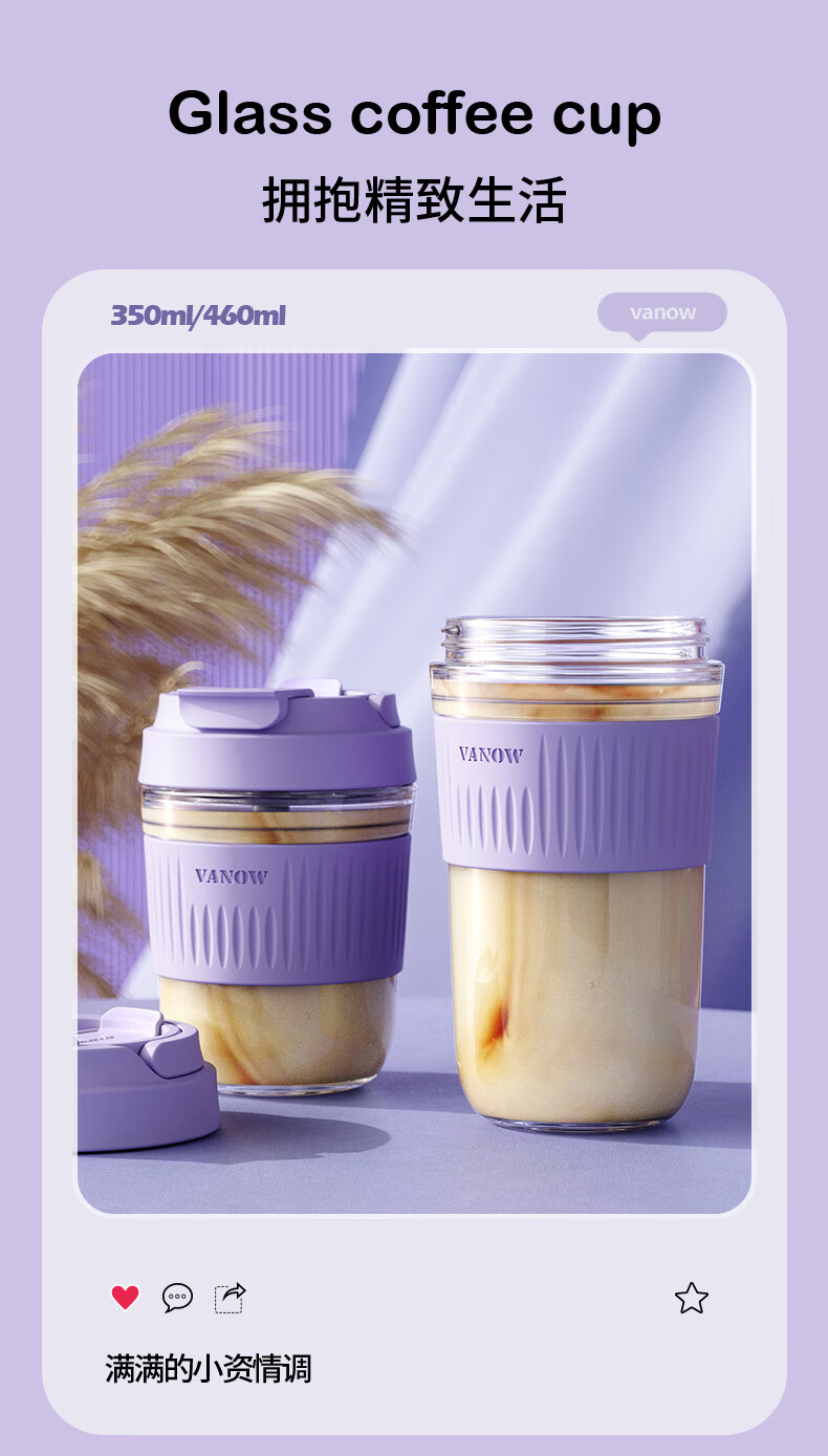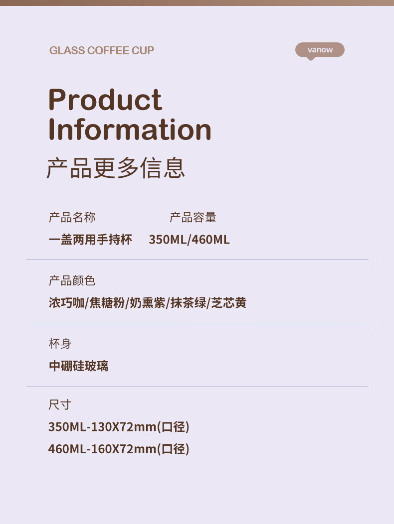 商品名称:Vanow 双饮玻璃咖啡杯 460ML VO-RZ46-B