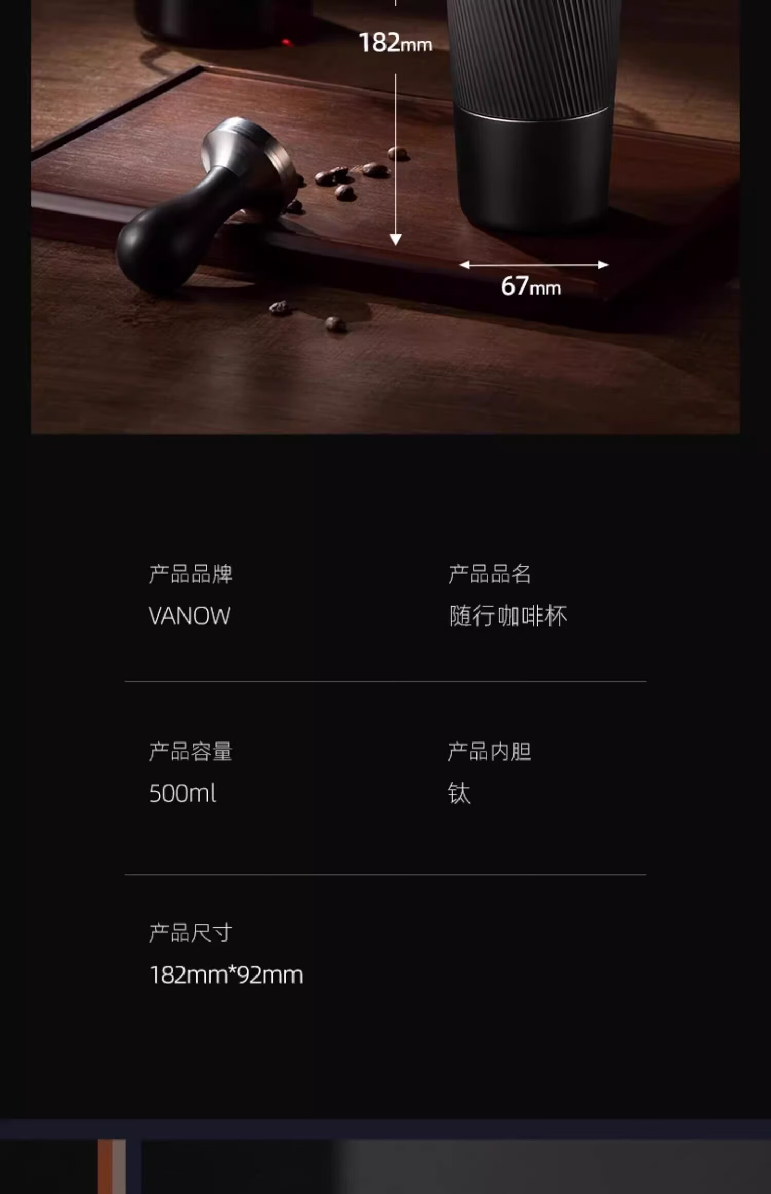 商品名称:Vanow 纯钛随行咖啡杯 550ML VO-COF-CT500