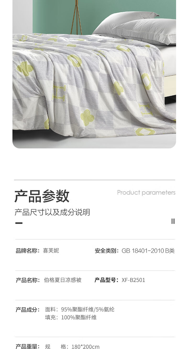 商品名称:喜芙妮 伯格夏日凉感被 180*200cm 1200g XF-B2501
