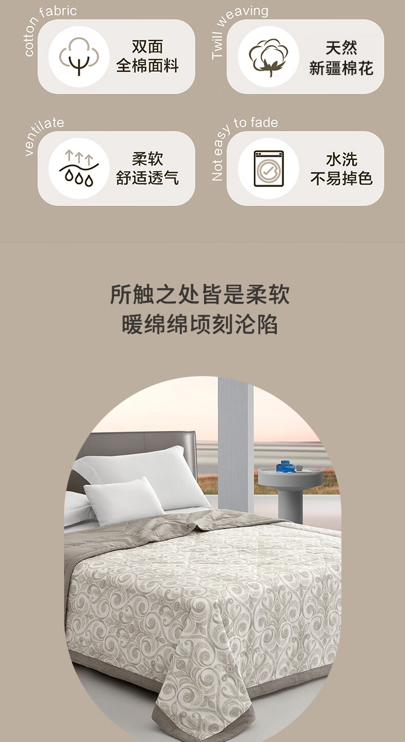 喜芙妮 纯棉水洗棉花被-玉颜 200*230cm 1650g XF-B2504