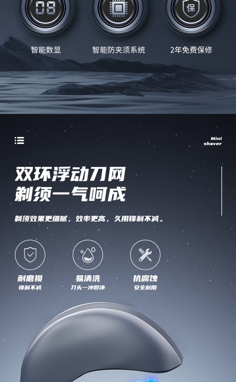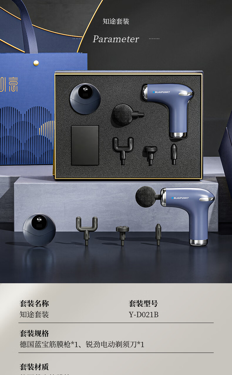 包装清单 :德国蓝宝筋膜枪*1、锐劲电动剃须刀*1