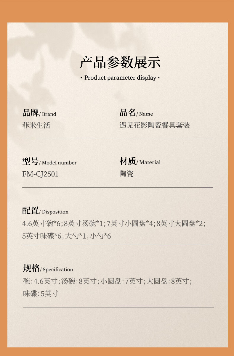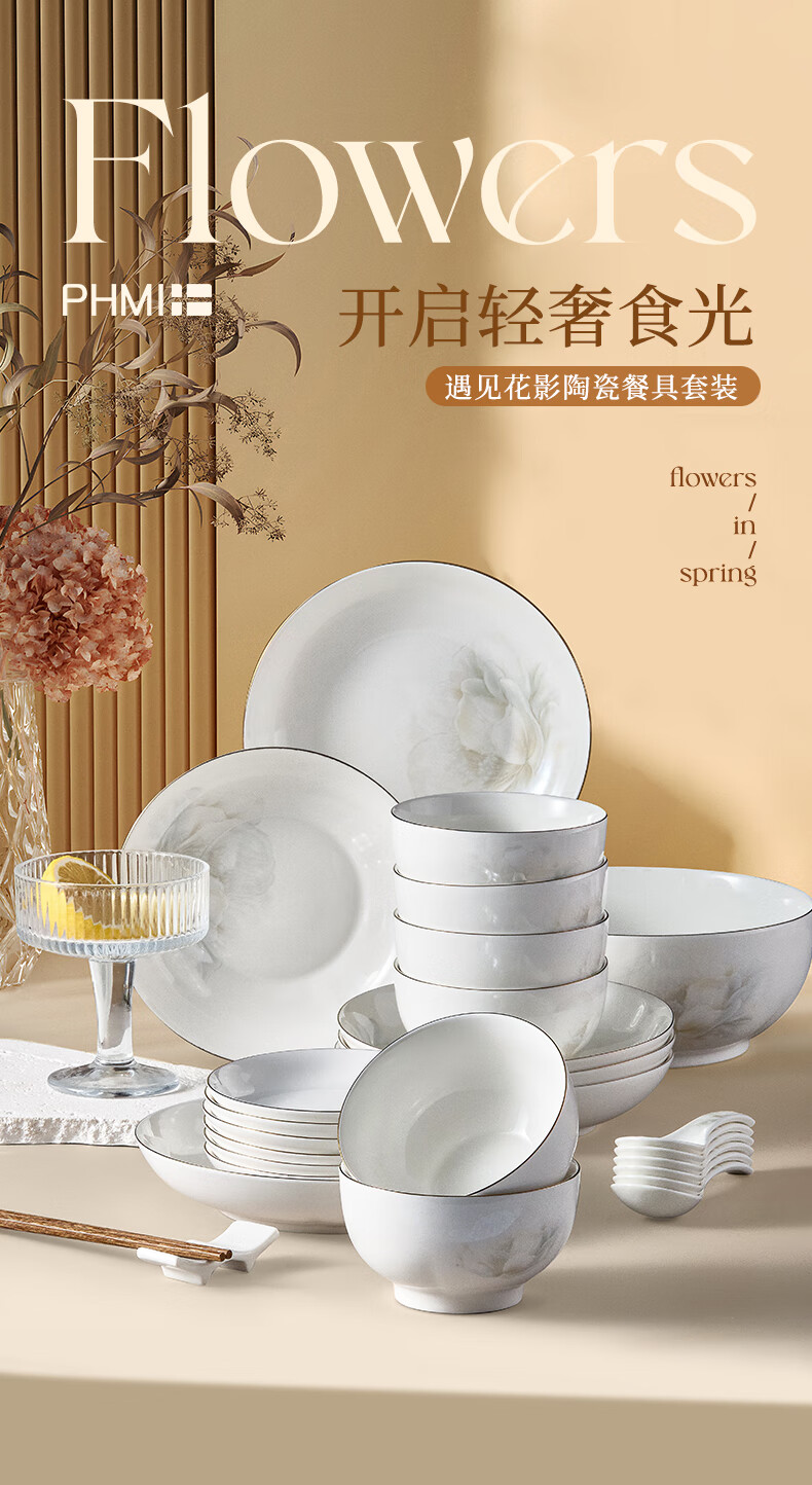 商品名称:菲米生活 遇见花影陶瓷餐具套装(二十六件套) FM-CJ2501