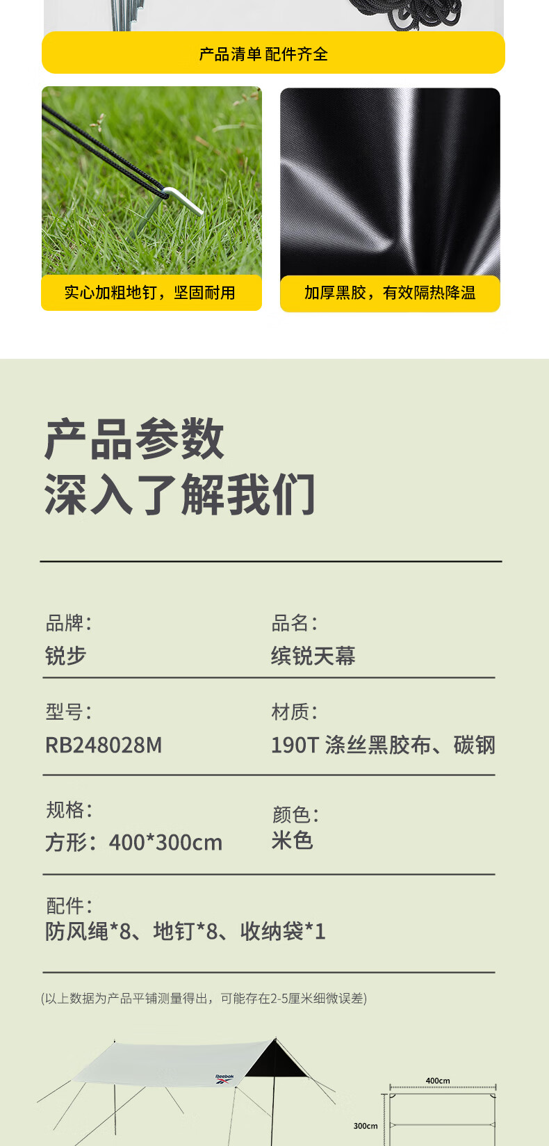 商品名称:REEBOK锐步 缤锐天幕 400*300cm RB248028M