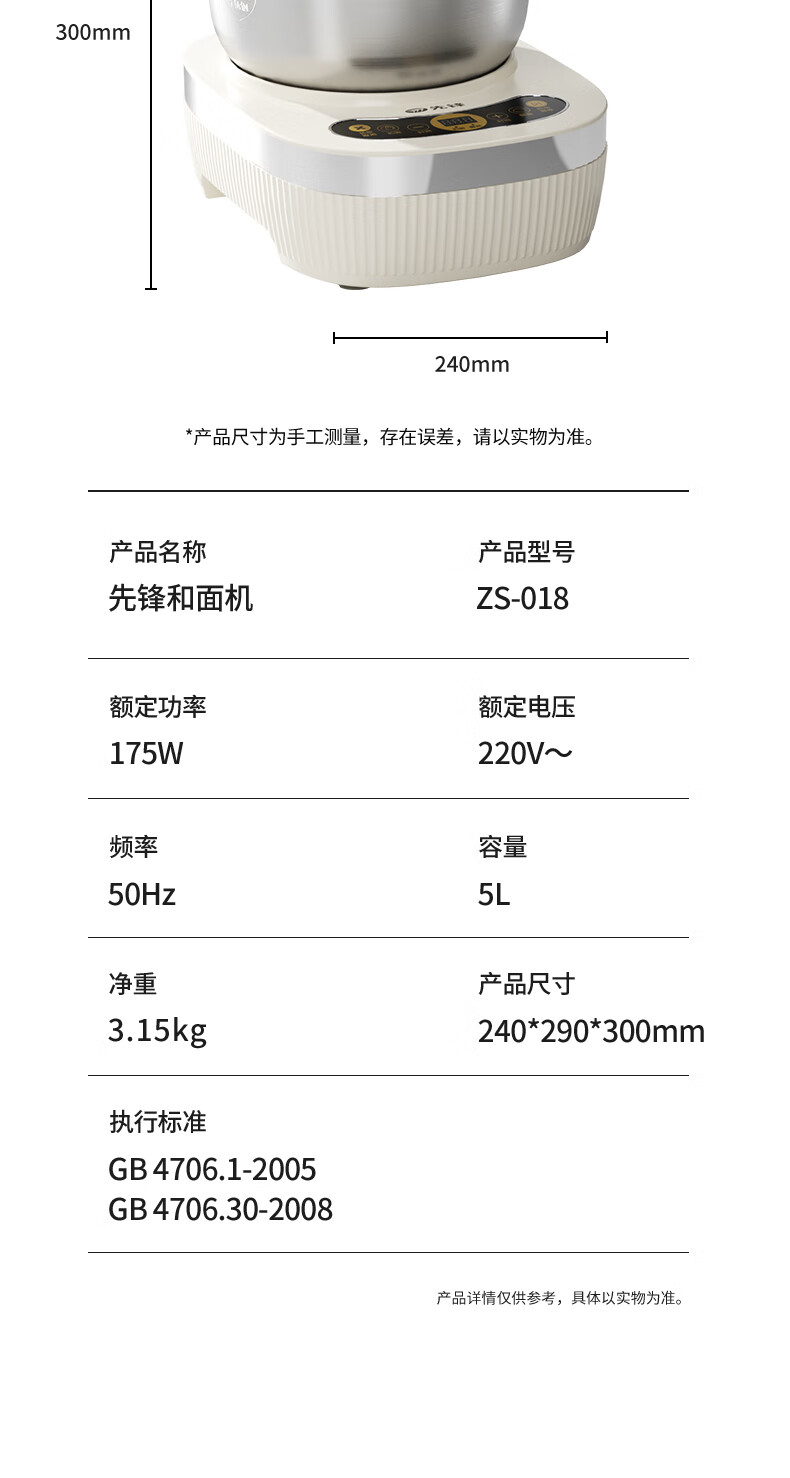 商品名称:先锋 和面机 5L ZS-018
