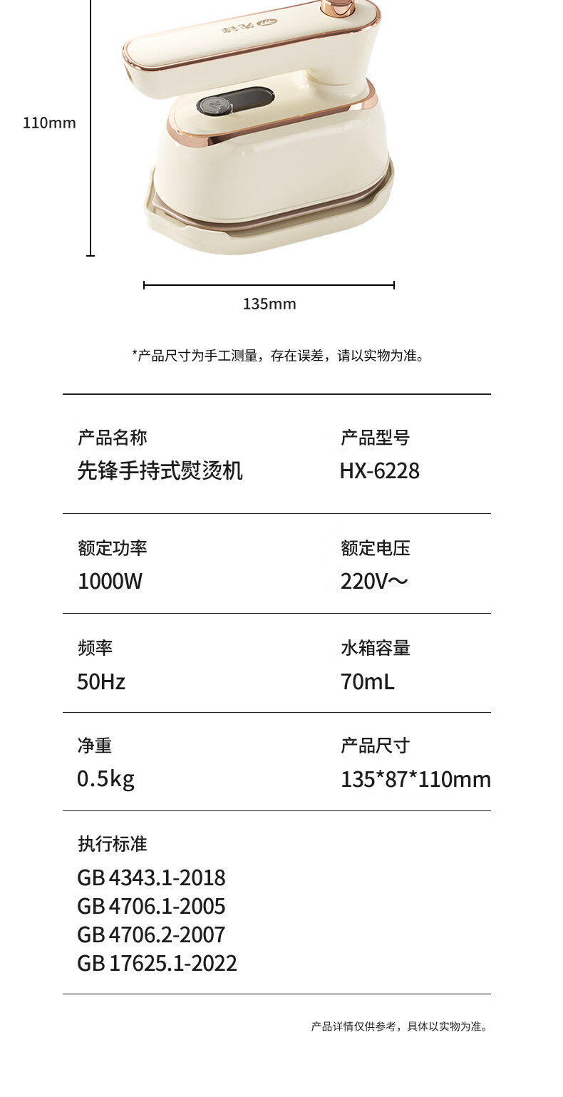 商品名称:先锋 手持式熨烫机 1000W HX-6228