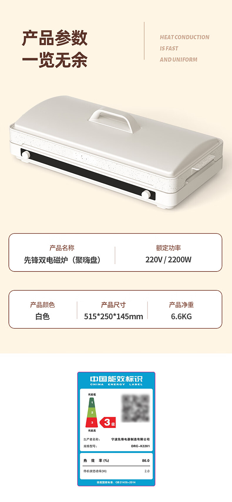商品名称:先锋 双电磁炉(聚嗨盘) 2200W DRG-K2201