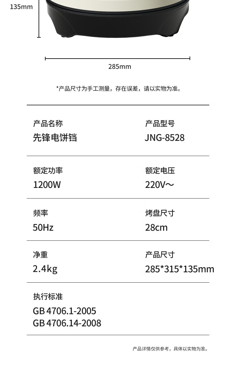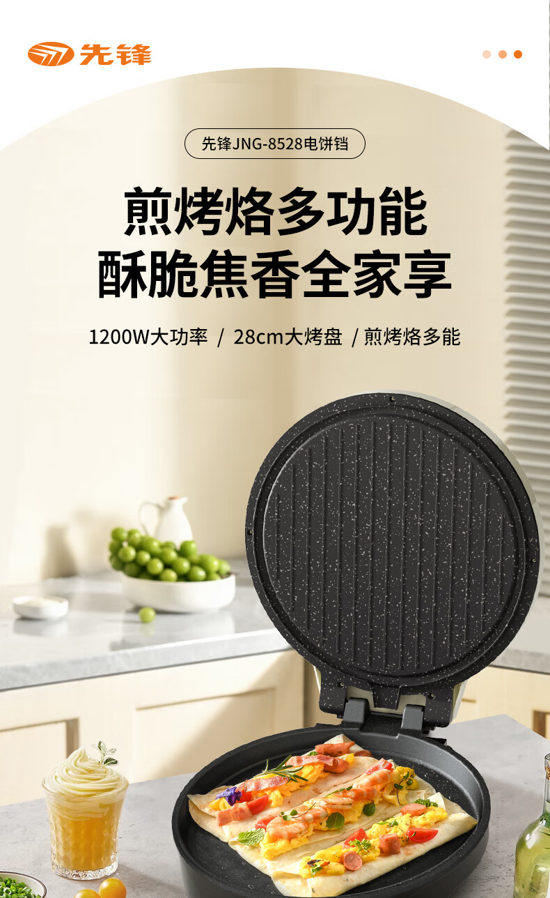 商品名称:先锋 电饼铛 1200w JNG-8528
