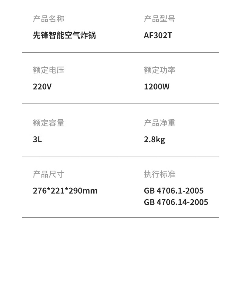 商品名称:先锋 智能空气炸锅 3L AF302T