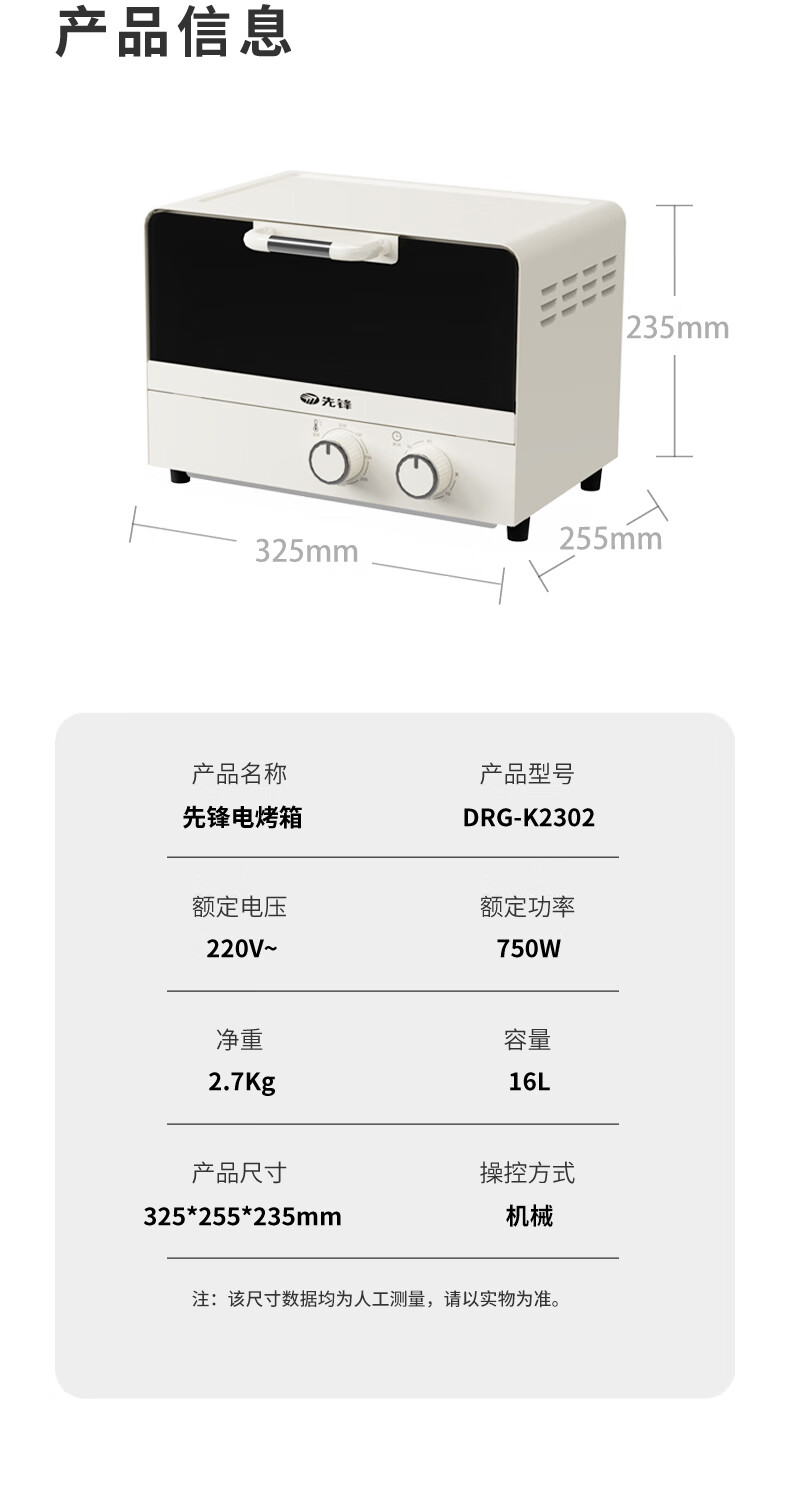 商品名称:先锋 电烤箱 750W DRG-K2302