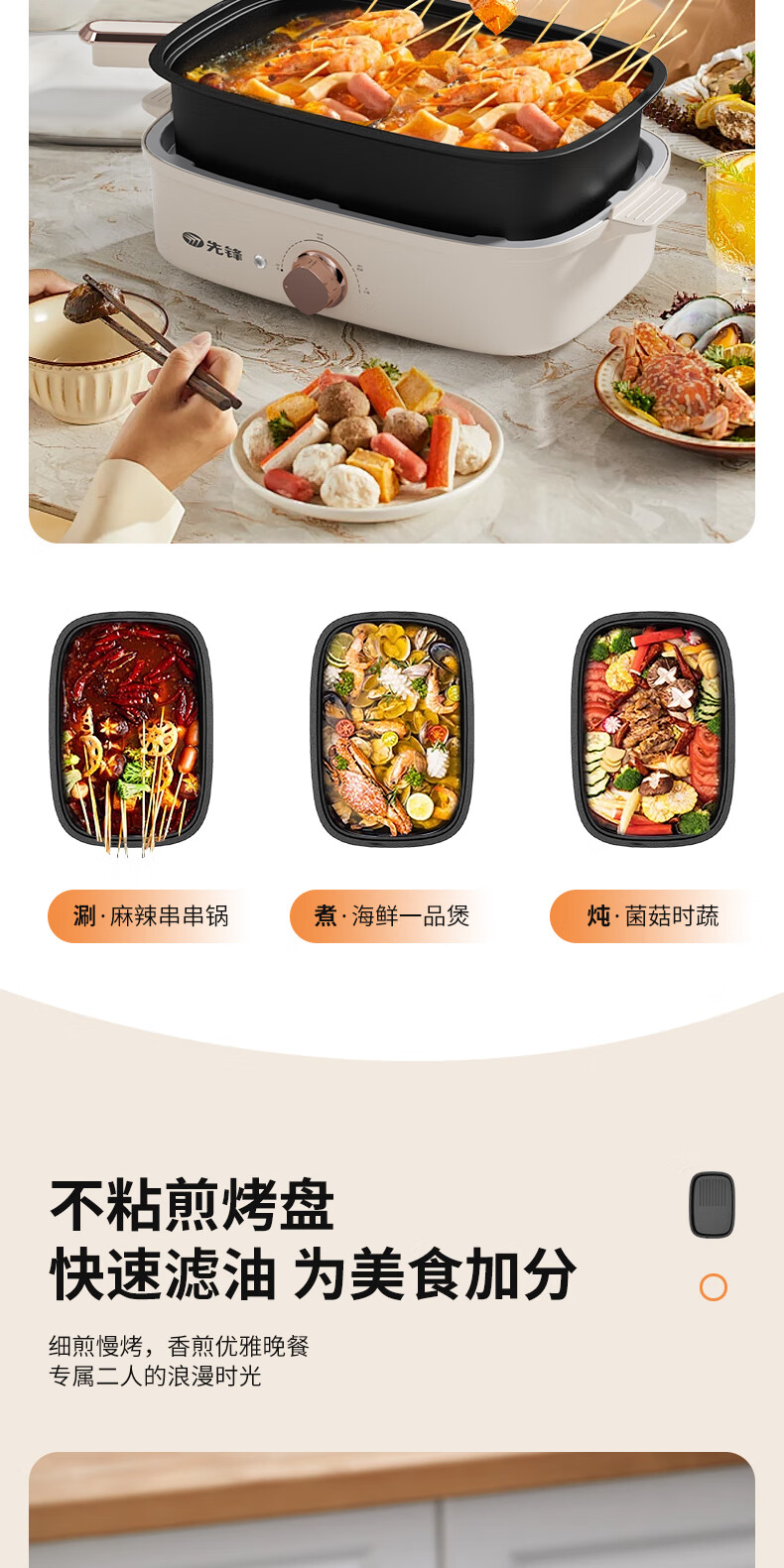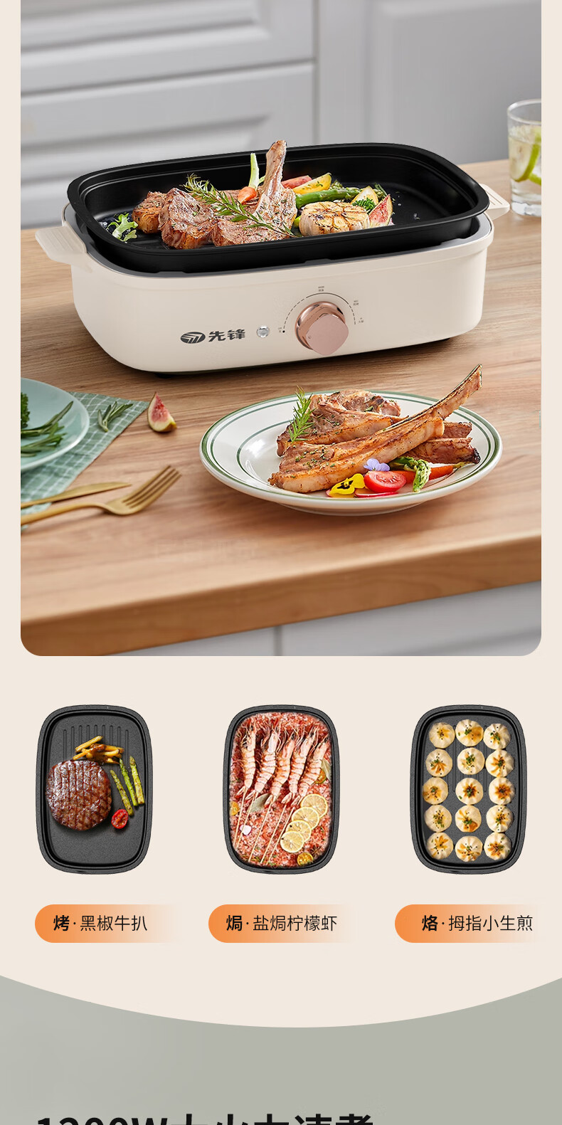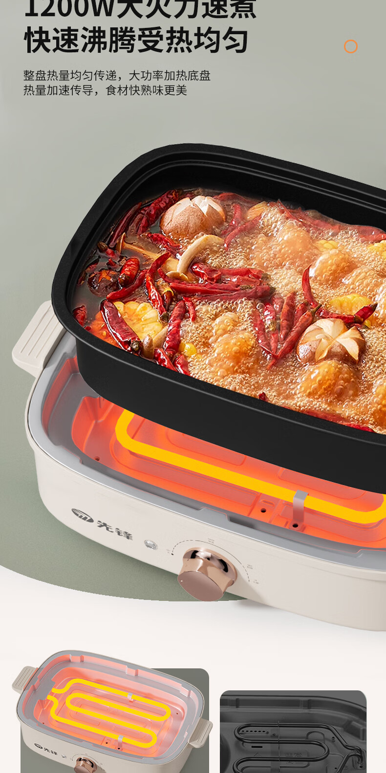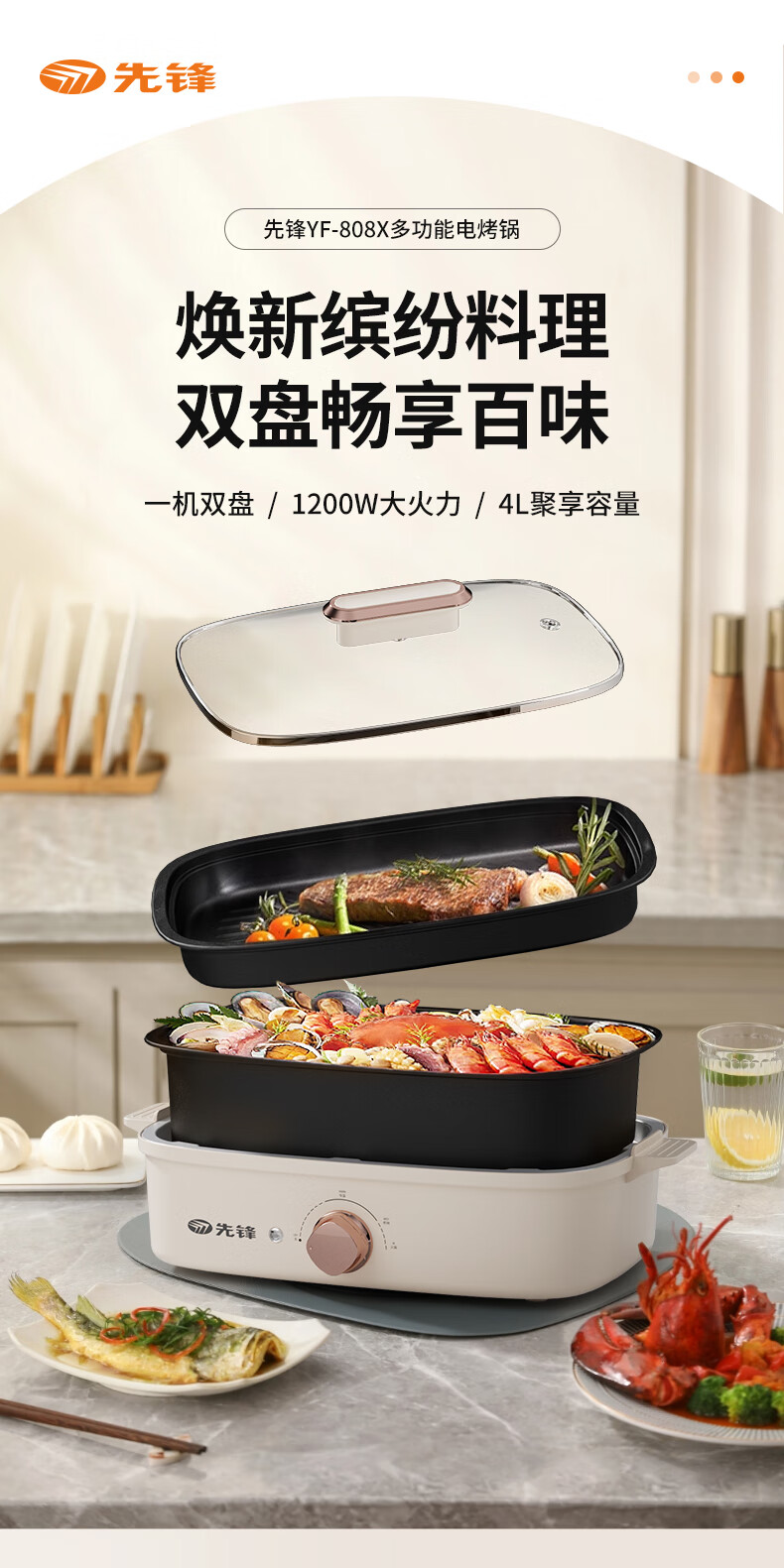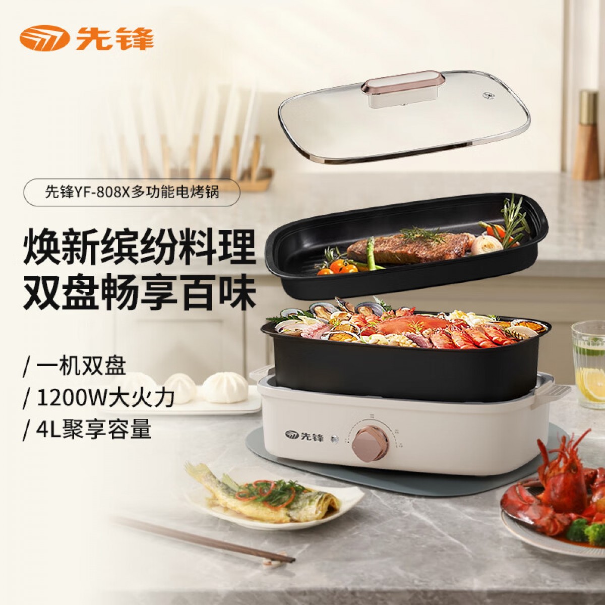 先锋 多功能电烤锅(多功能料理锅) 1200w YF-808X