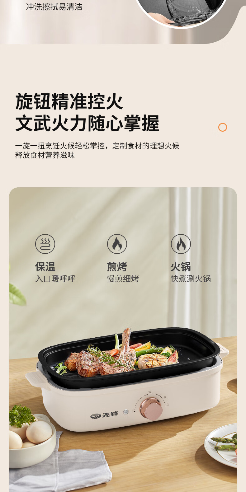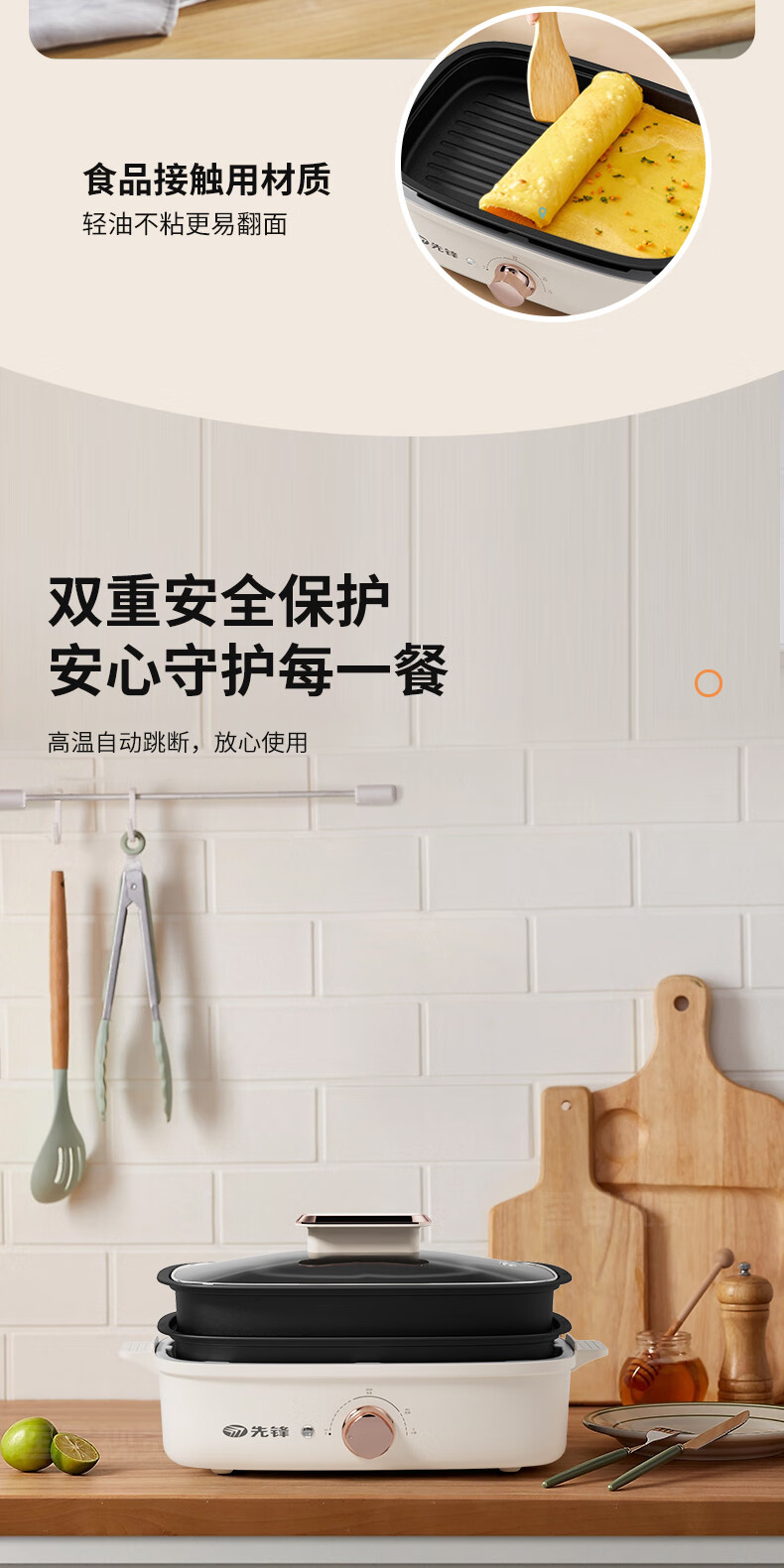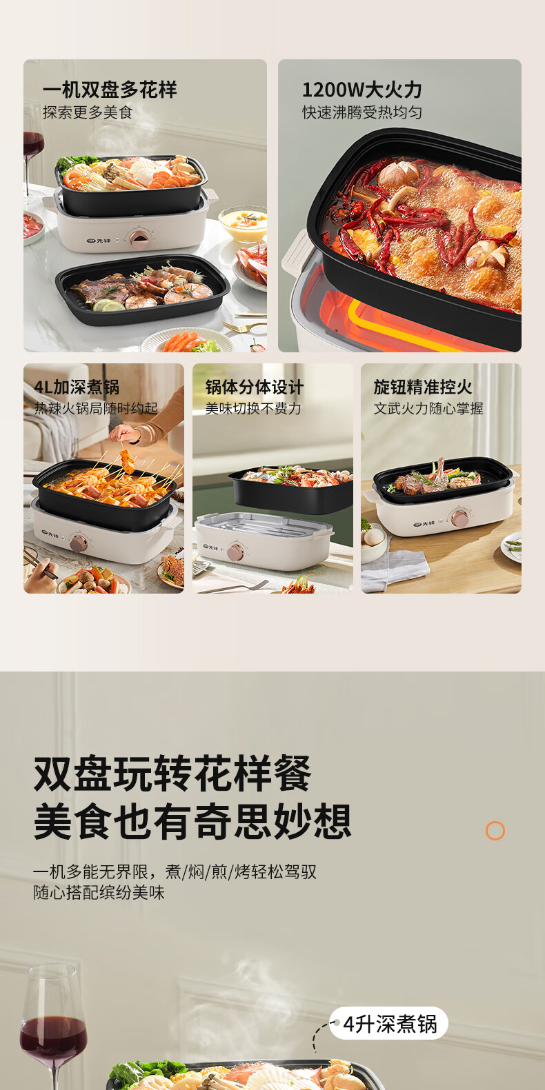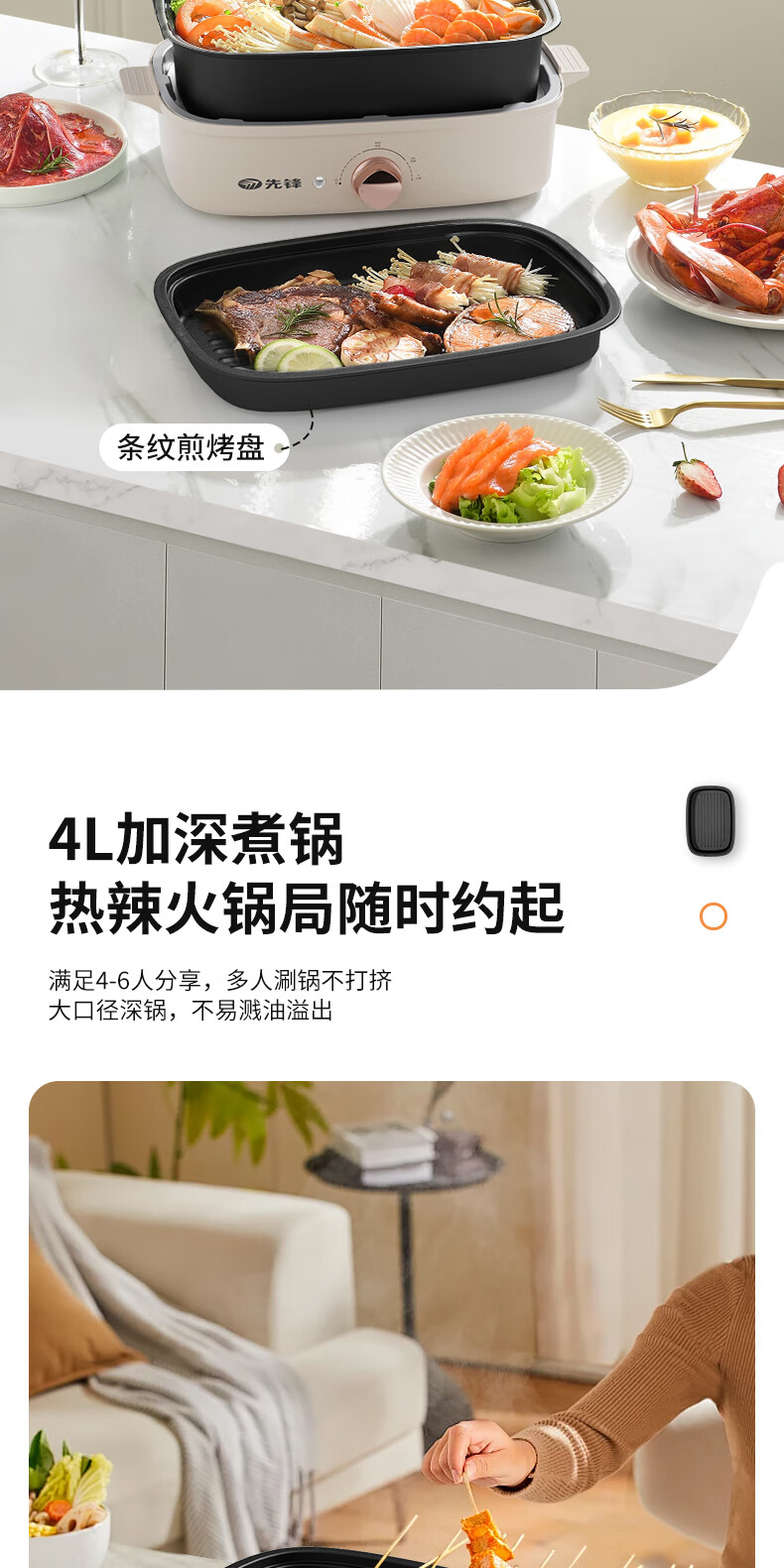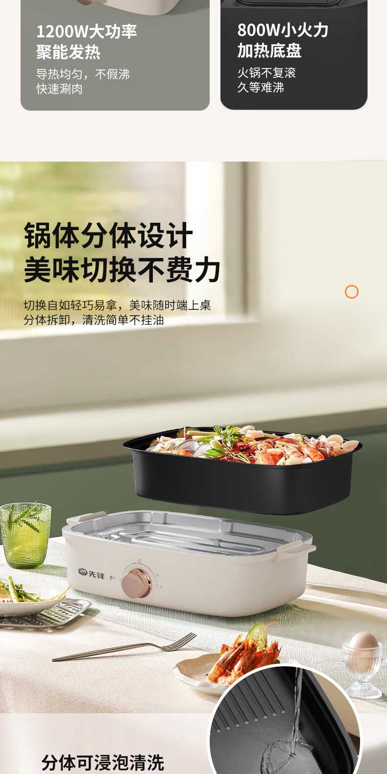 先锋 多功能电烤锅(多功能料理锅) 1200w YF-808X
