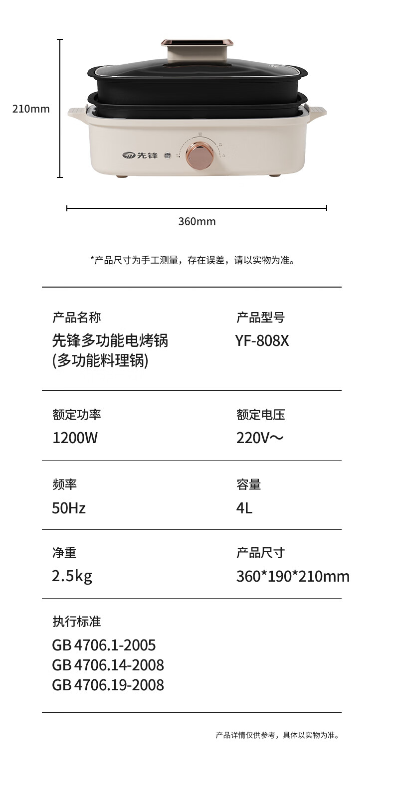 商品名称:先锋 多功能电烤锅(多功能料理锅) 1200w YF-808X
