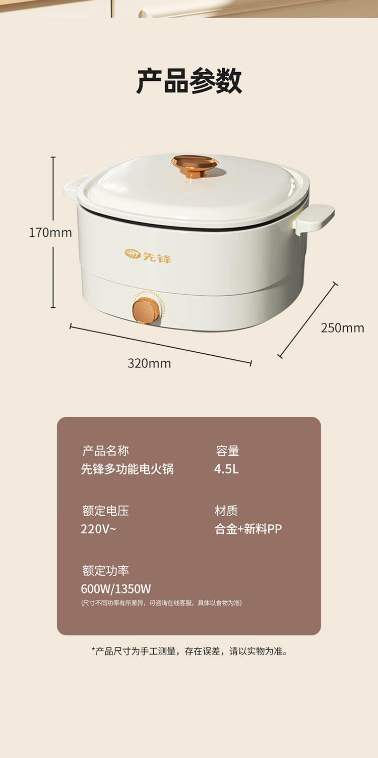 商品名称:先锋 多功能电热锅 1350W DRG-D5006
