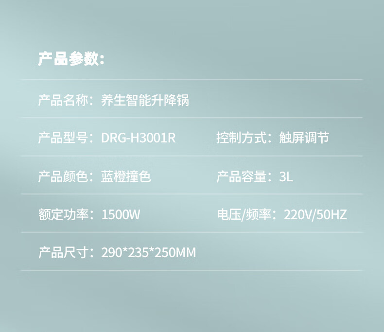 商品名称:先锋 液体加热器(升降火锅) 1500W DRG-H3001R
