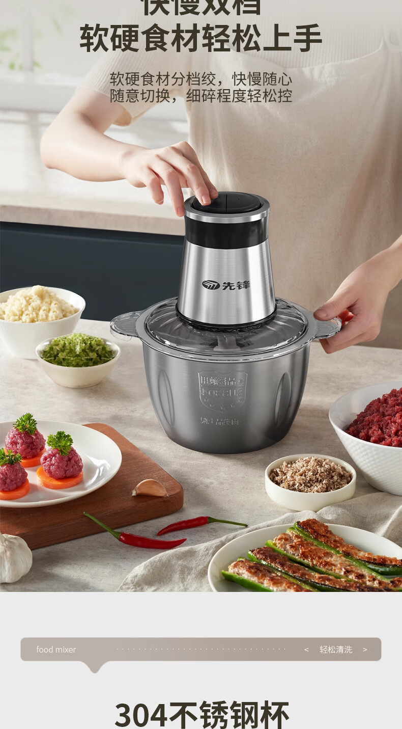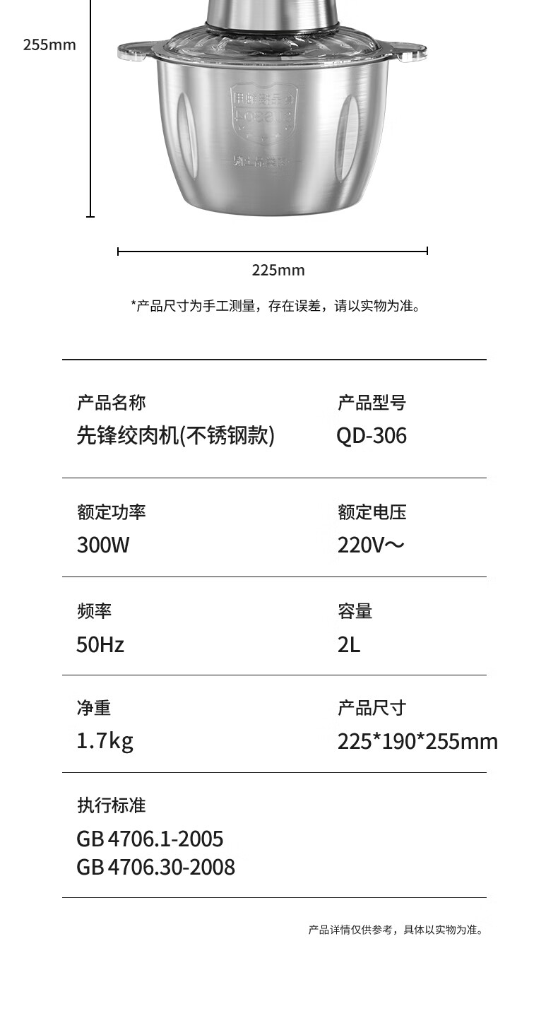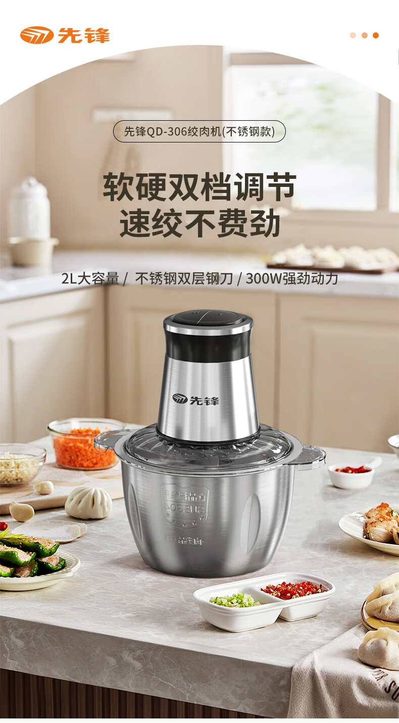 商品名称:先锋 绞肉机 2L QD-306(不锈钢款)