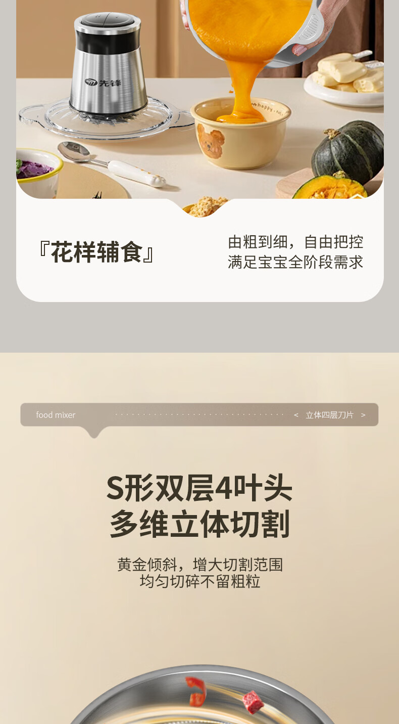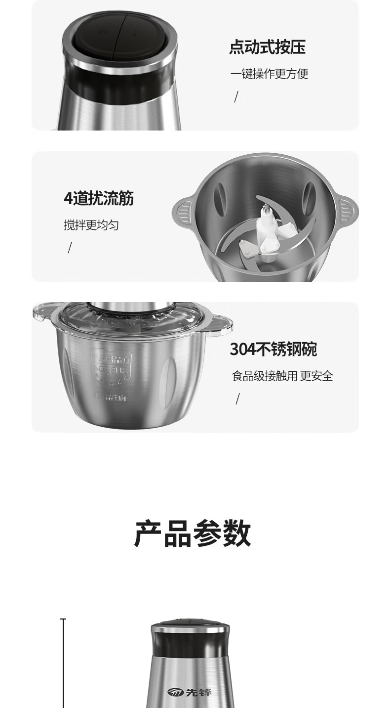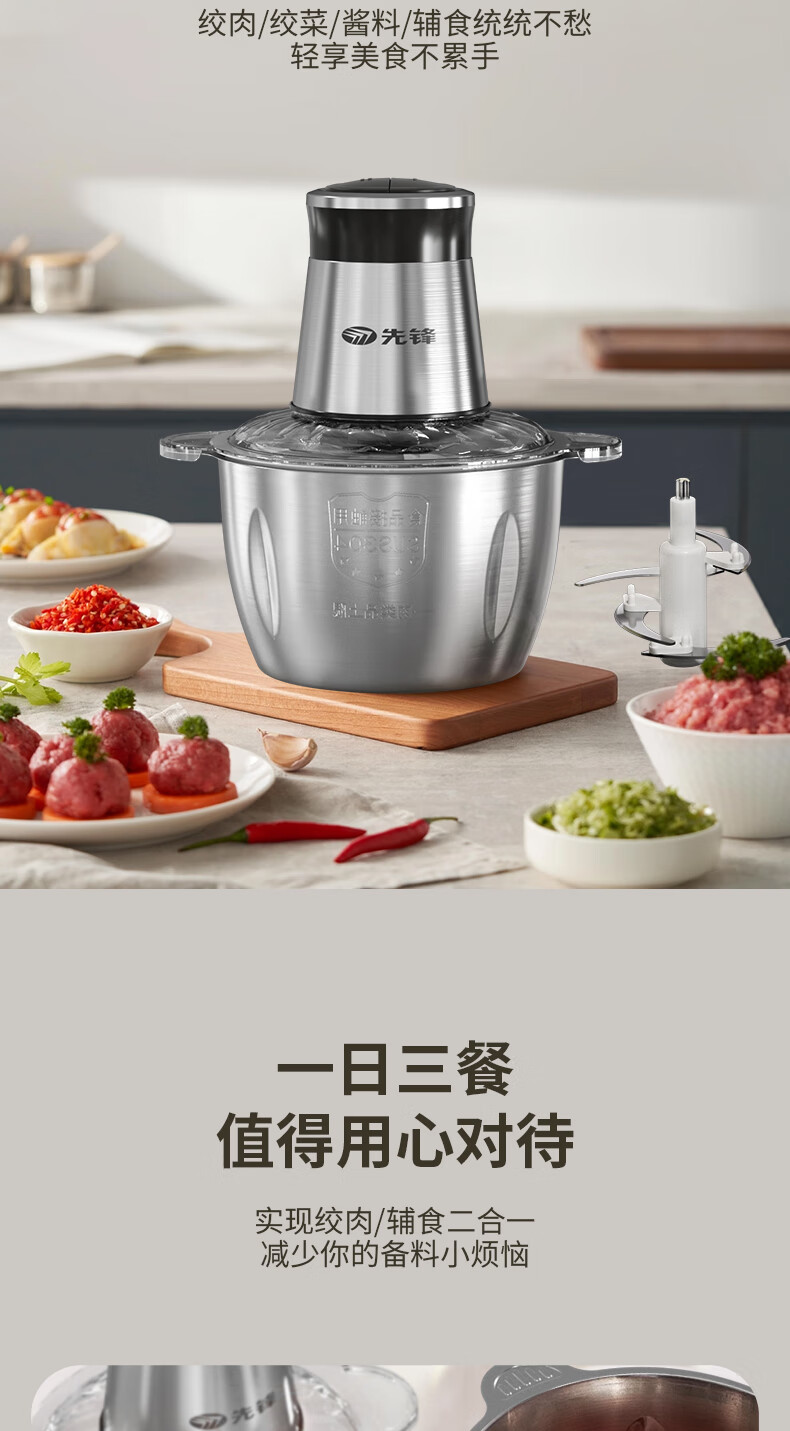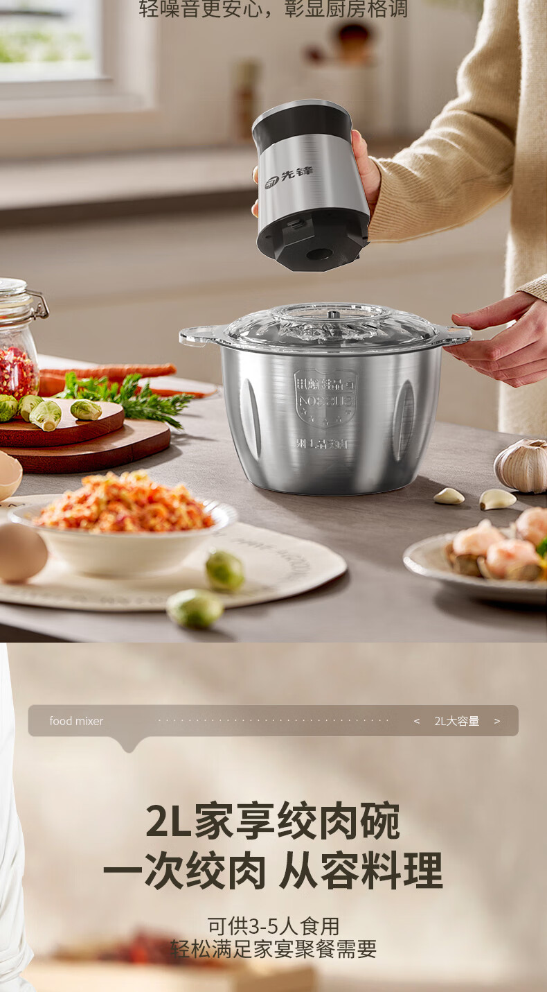 商品名称:先锋 绞肉机 2L QD-306(不锈钢款)