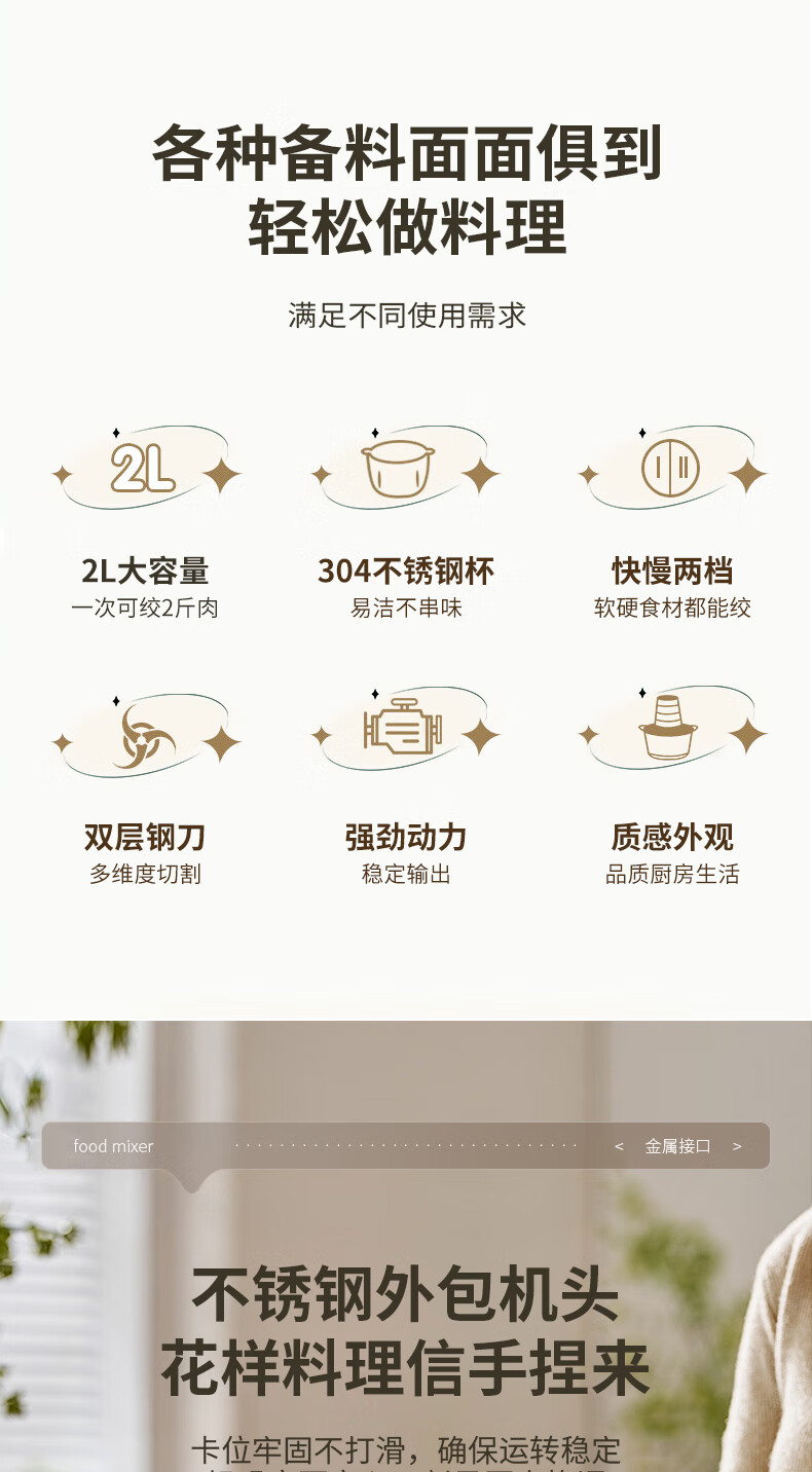 先锋 绞肉机 2L QD-306(不锈钢款)