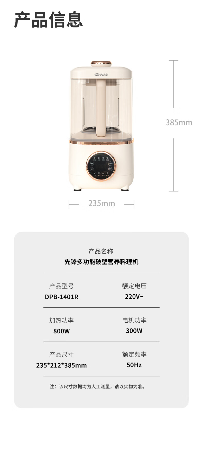 商品名称:先锋 多功能破壁营养料理机 1.75L DPB-1401R