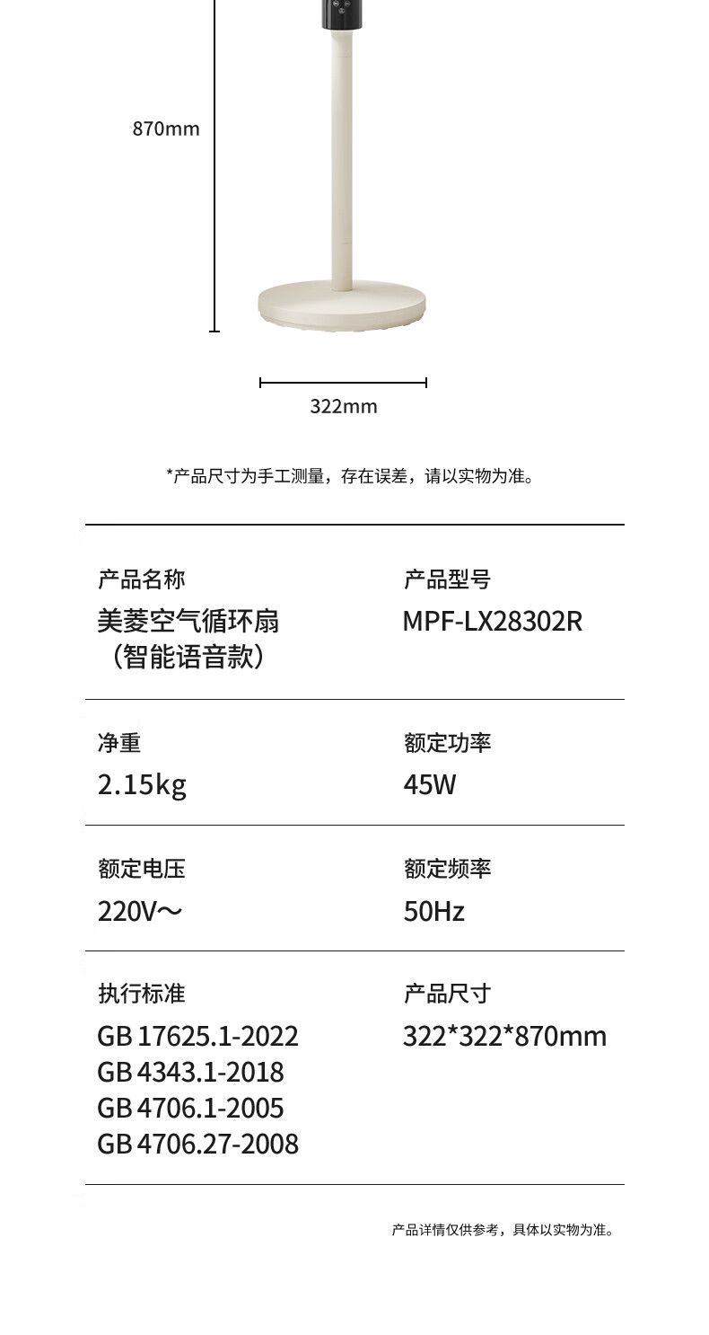 商品名称:美菱 空气循环扇(智能语音款) 45W MPF-LX28302R