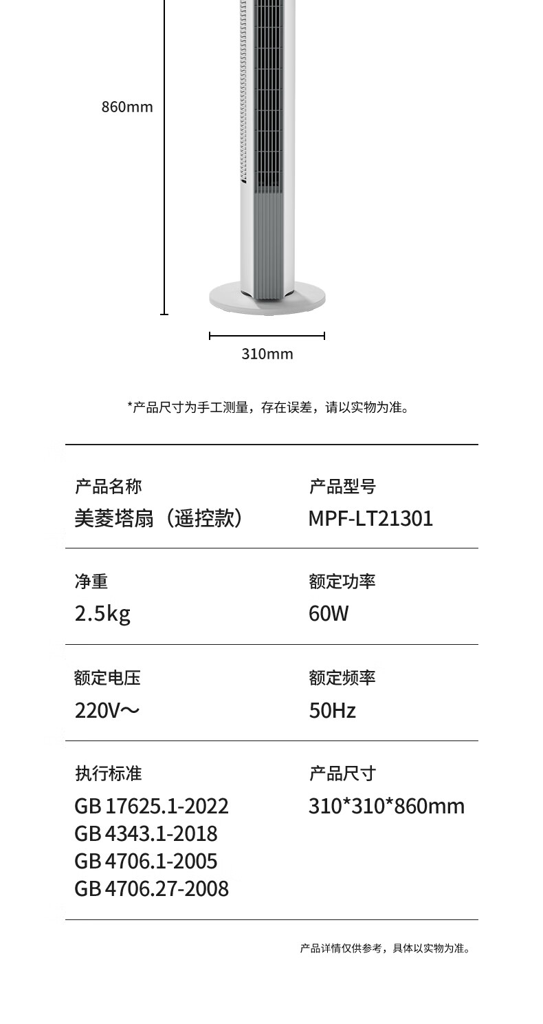 商品名称:美菱 塔扇(遥控款) 60W MPF-LT21301