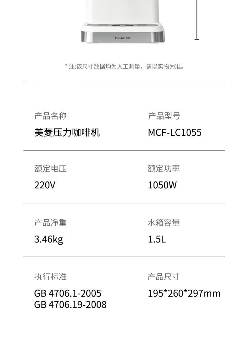 商品名称:美菱 压力咖啡机 1.5L MCF-LC1055