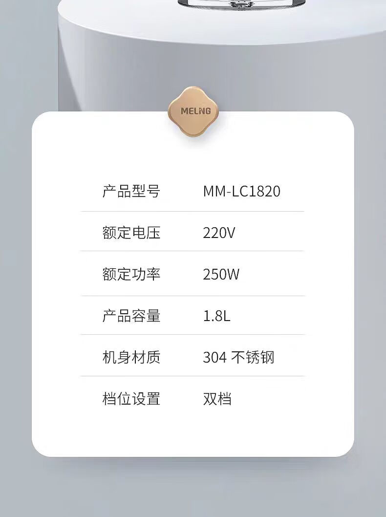 商品名称:美菱 绞肉机(玻璃碗) 1.8L MM-LC1820