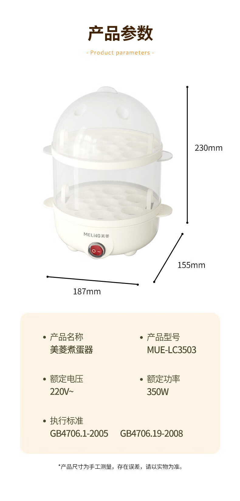 商品名称:美菱 煮蛋器 350W MUE-LC3503
