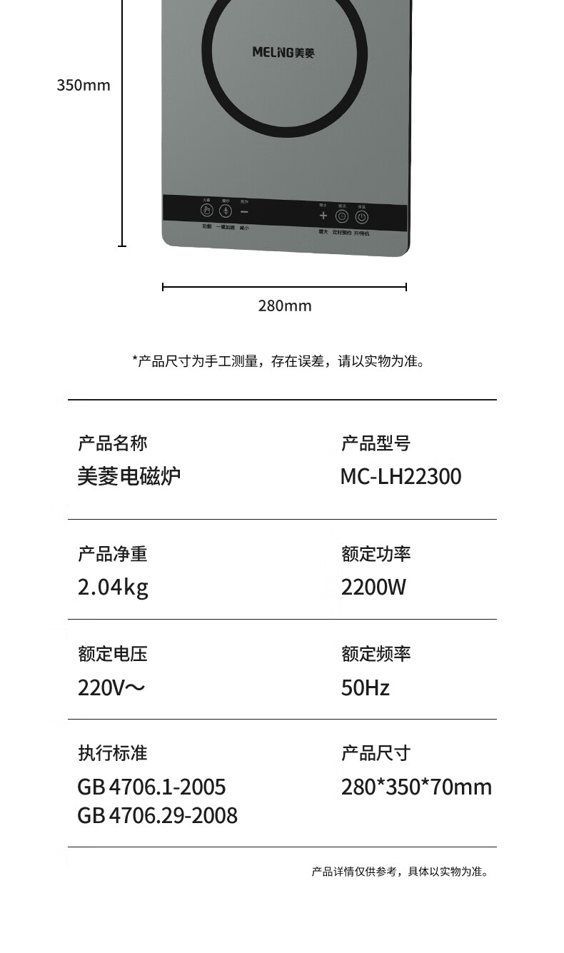 商品名称:美菱 电磁炉 2200W MC-LH22300