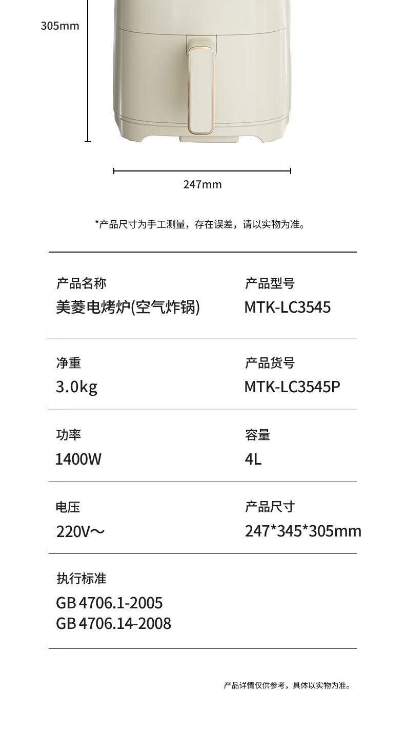 商品名称:美菱 电烤炉(空气炸锅)(新) 3.5L MTK-LC3545