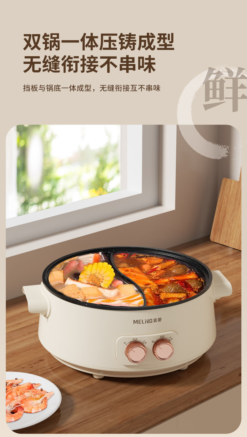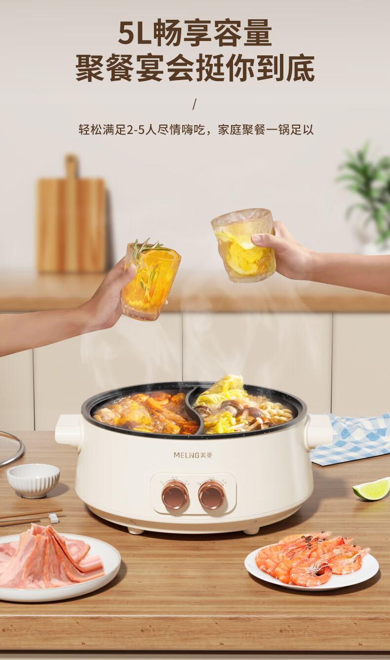 美菱 电热锅(鸳鸯电火锅) 5L MT-LC1605