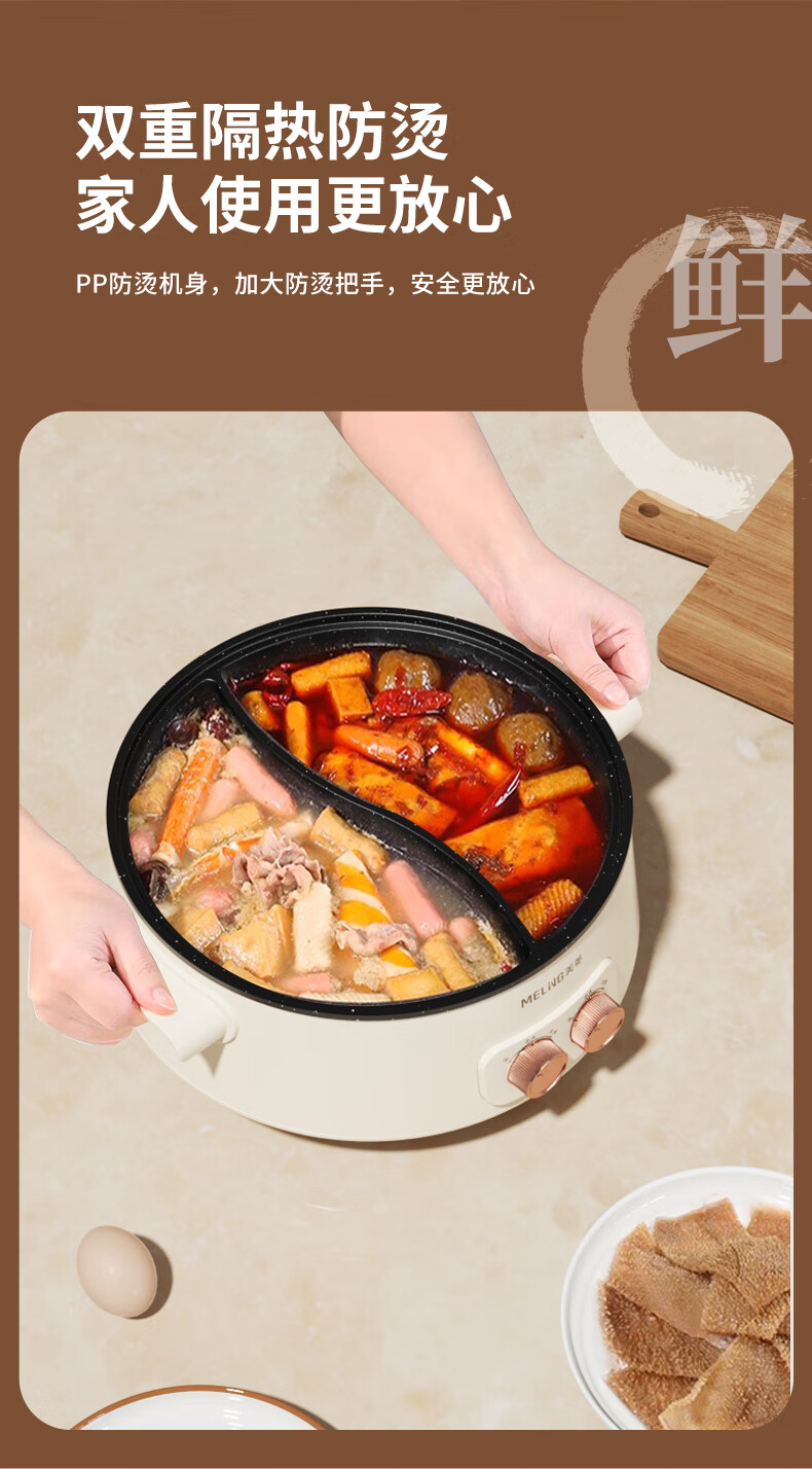 商品名称:美菱 电热锅(鸳鸯电火锅) 5L MT-LC1605