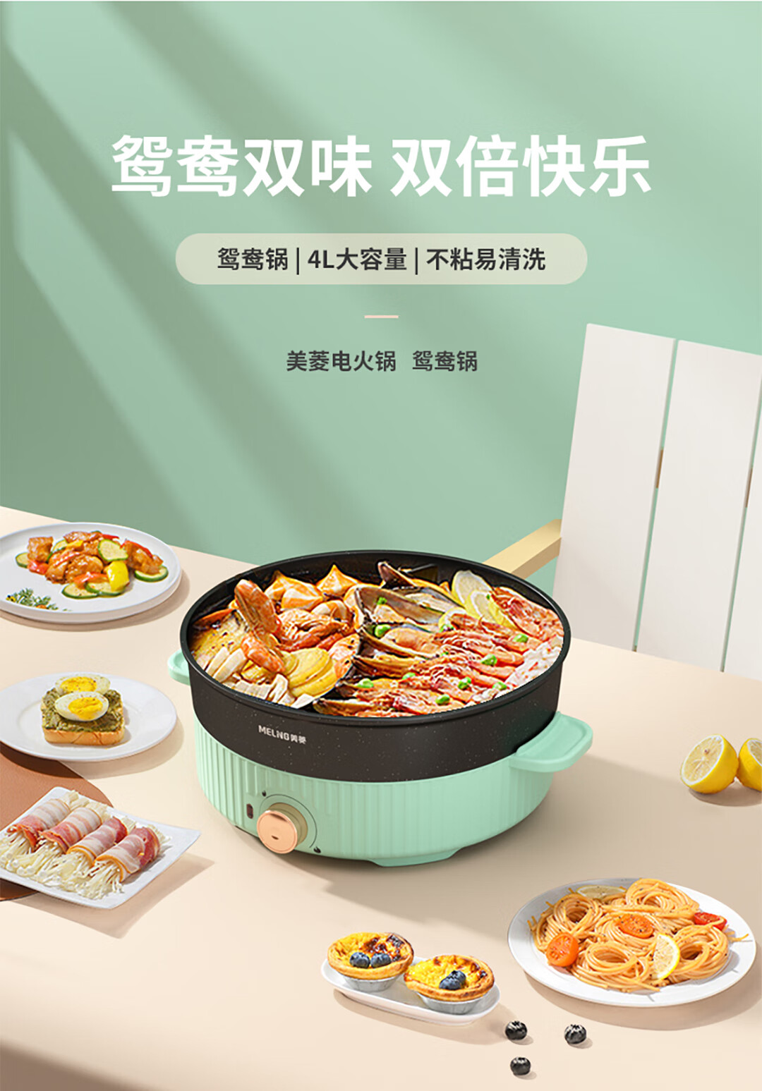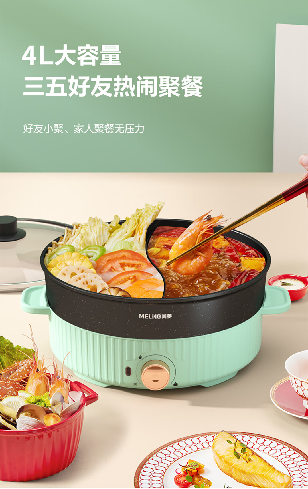 美菱 电热锅(鸳鸯电火锅) 1400W MT-LC4018