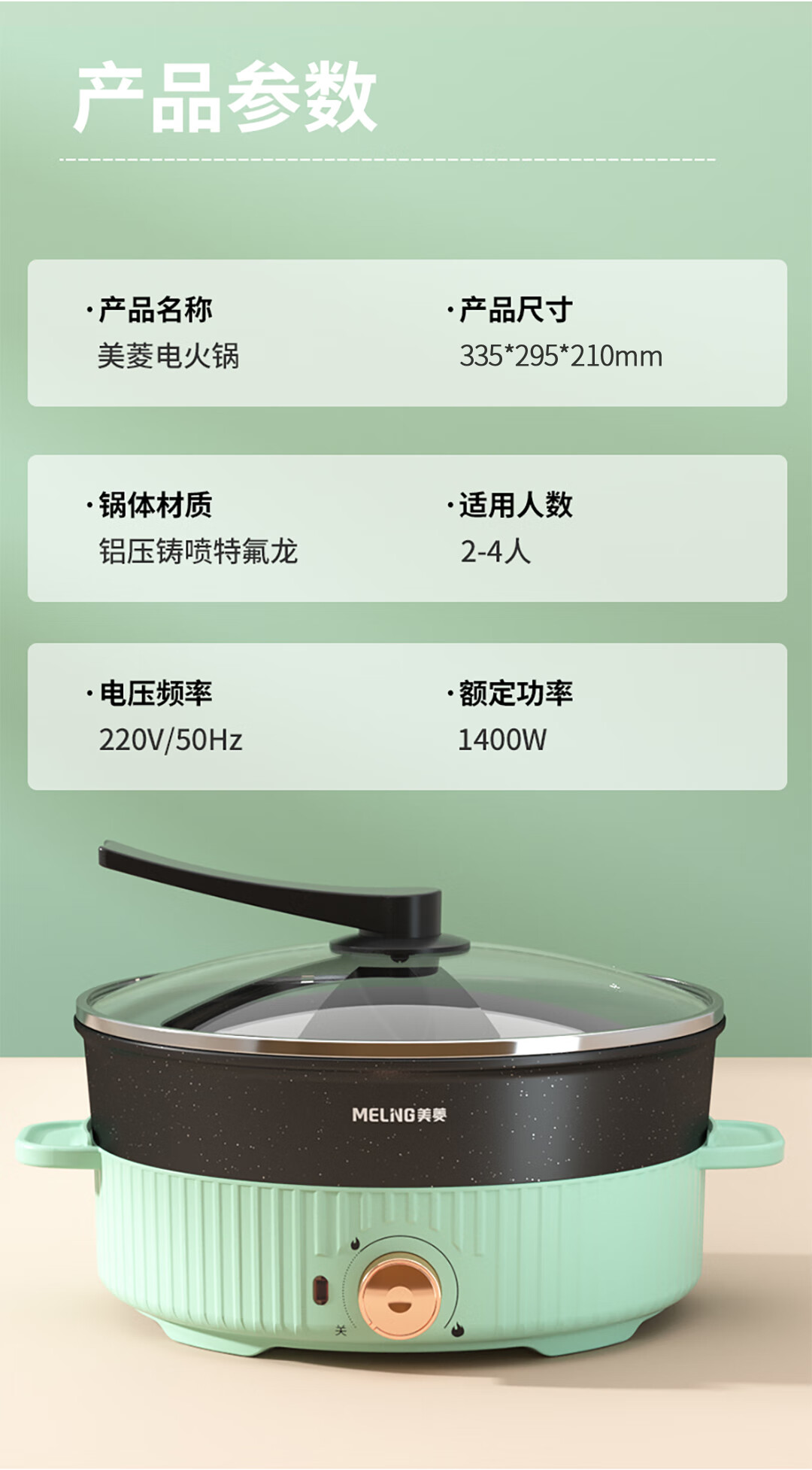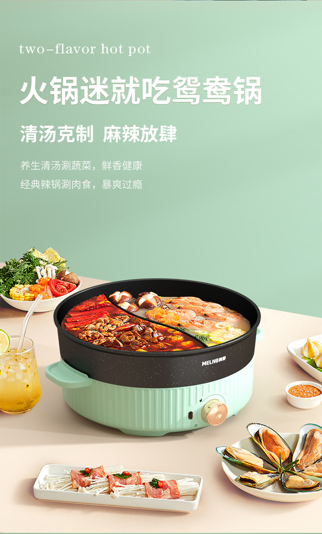 商品名称:美菱 电热锅(鸳鸯电火锅) 1400W MT-LC4018