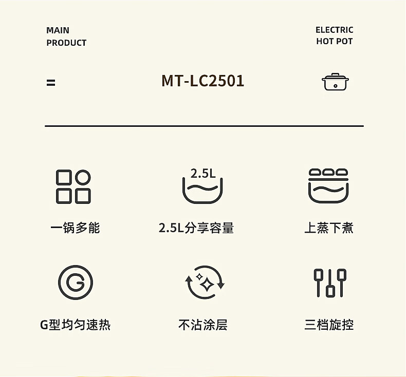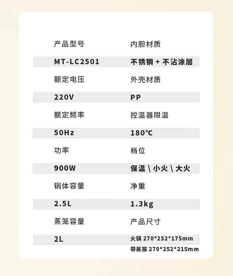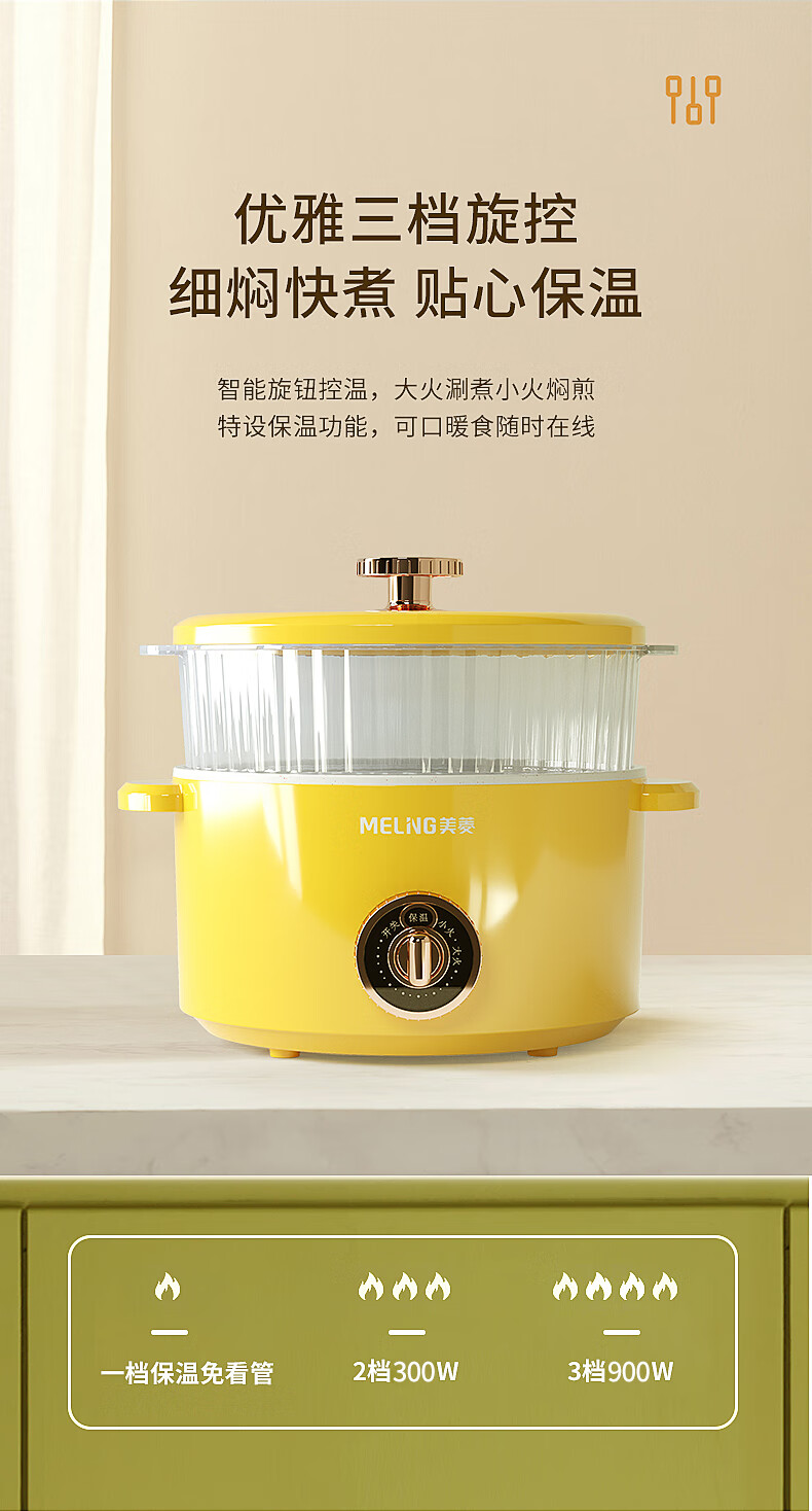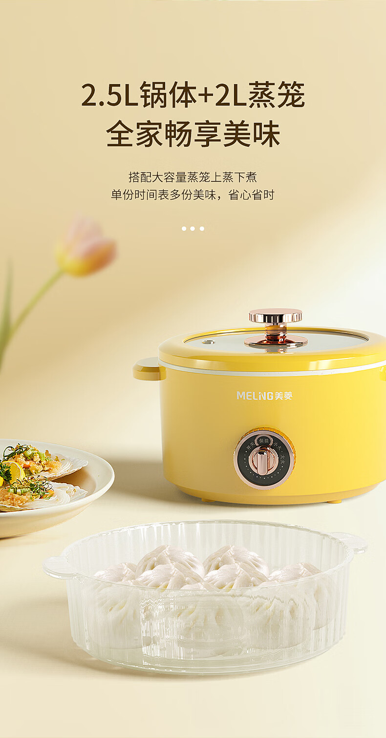 商品名称:美菱 电火锅(双层可蒸可煮) 2.5L MT-LC2501