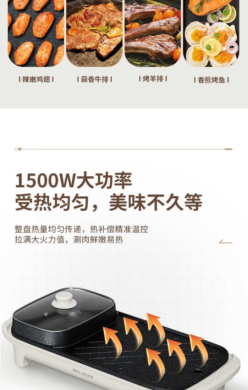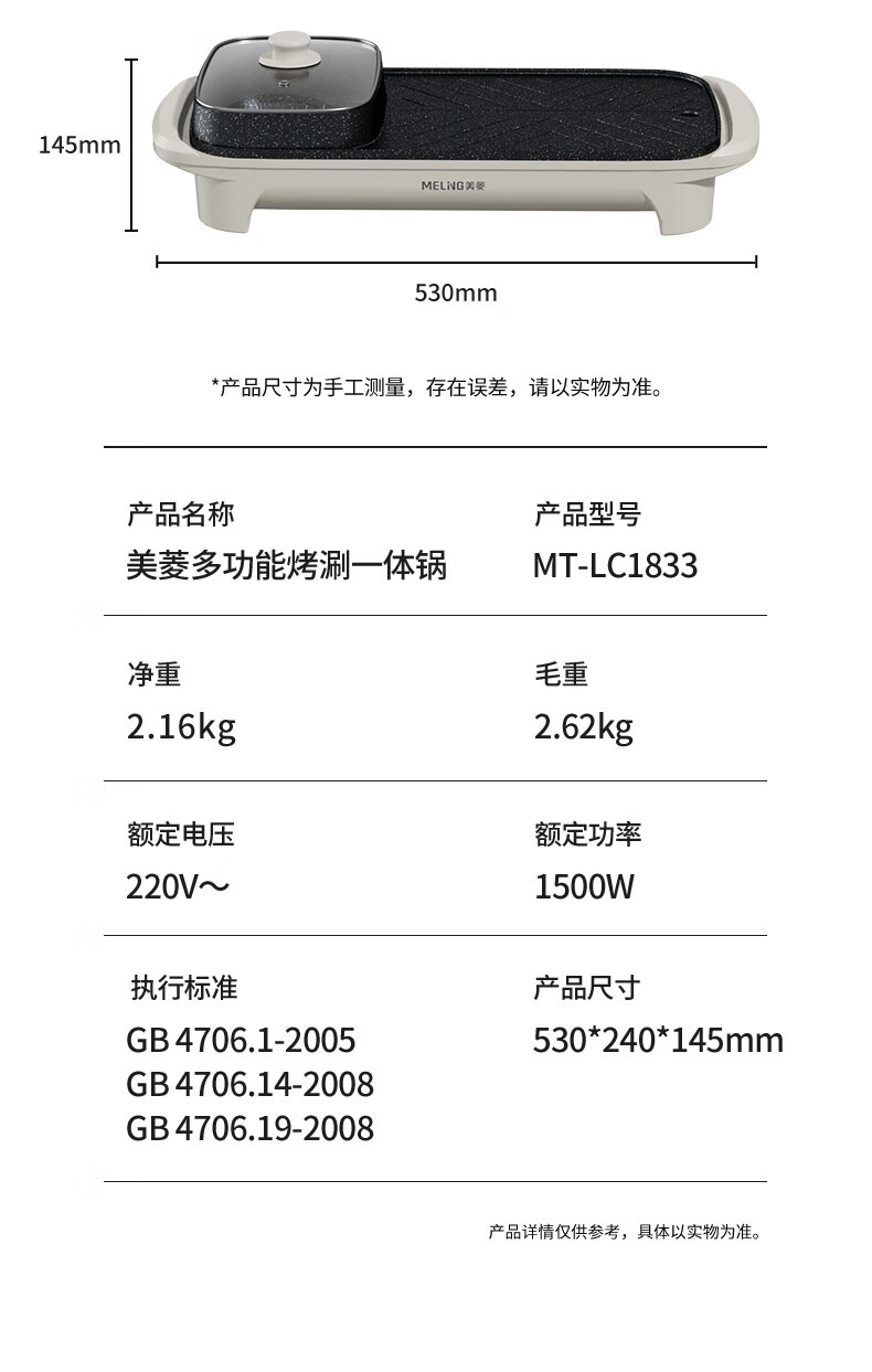 商品名称:美菱 多功能涮烤一体锅 1500W MT-LC1833