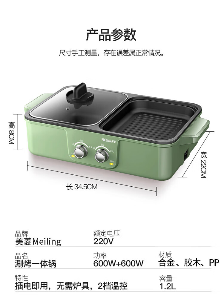 商品名称:美菱 多功能涮烤一体锅 1.2L MT-LC1833