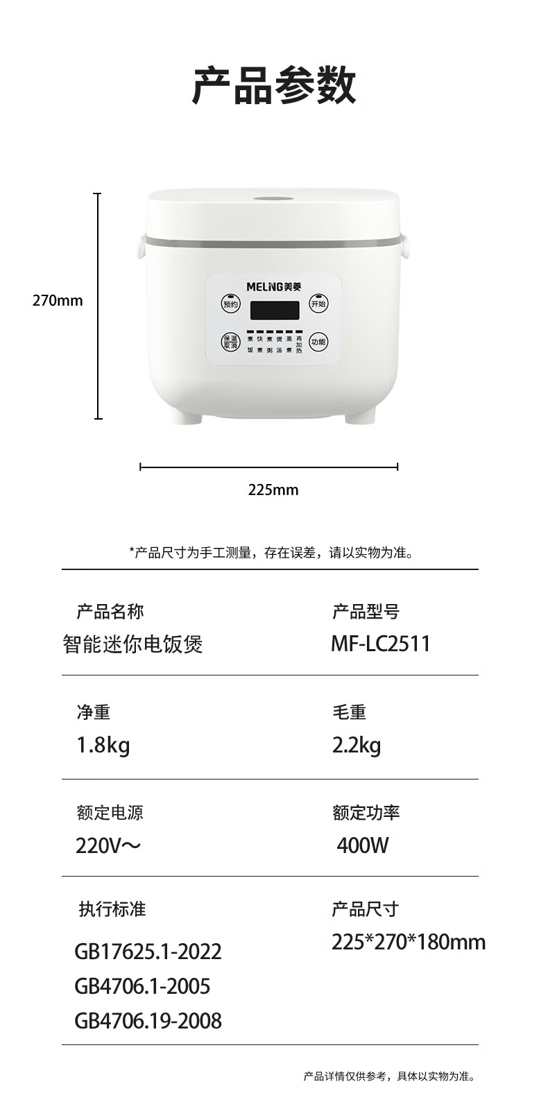 商品名称:美菱 智能养生电饭煲(新) 2L MF-LC2511