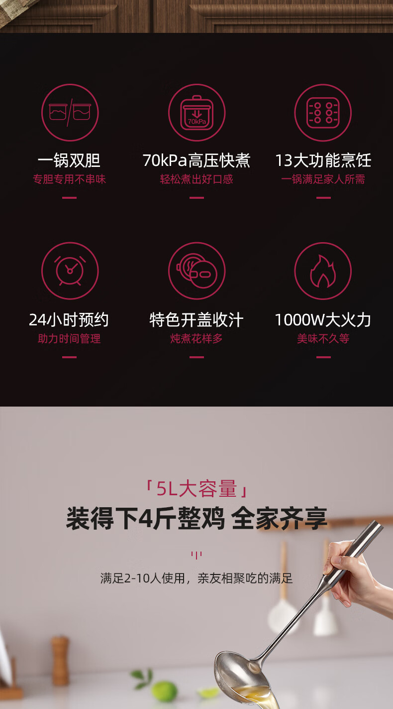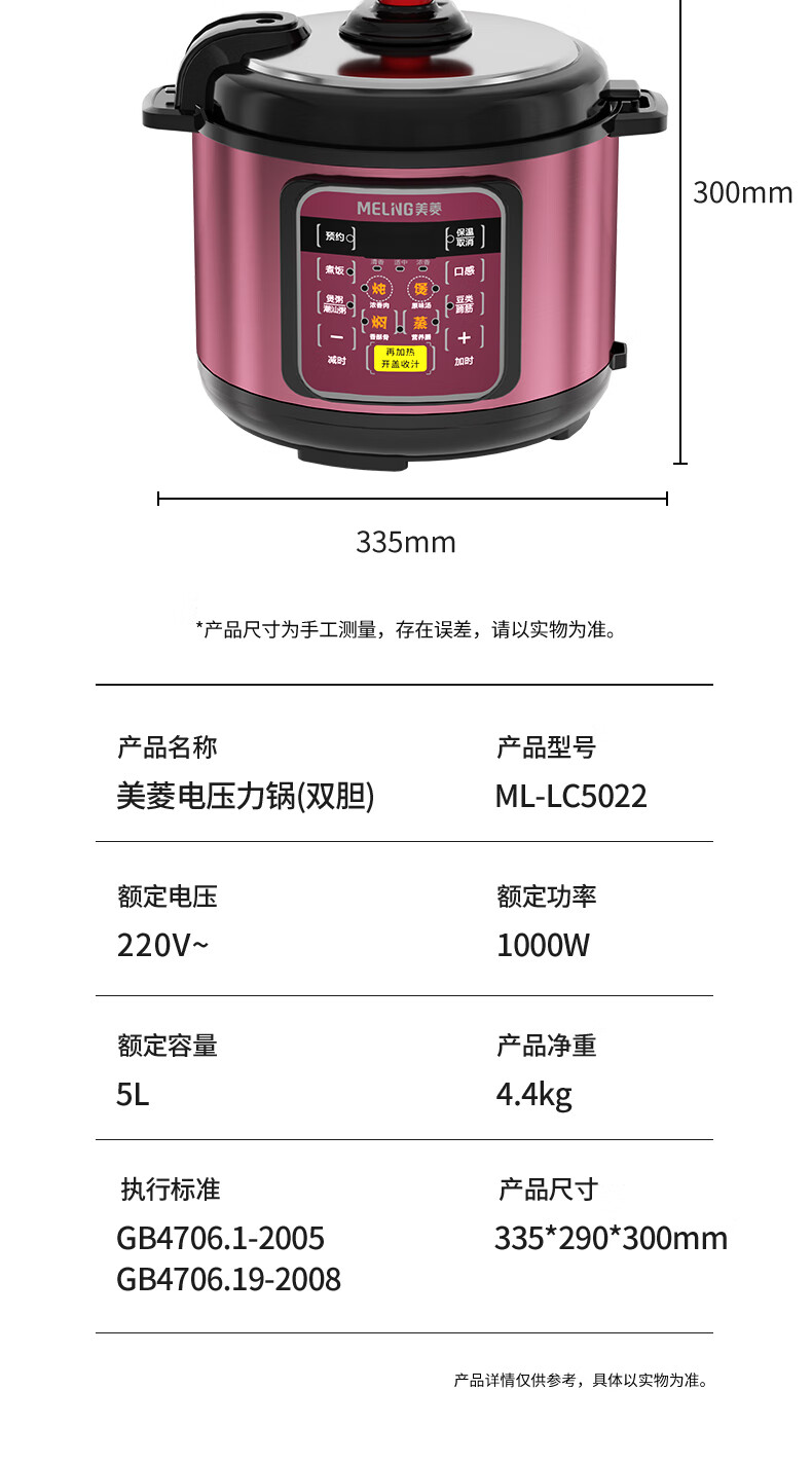 商品名称:美菱 电压力锅(双胆) 10L ML-LC5022